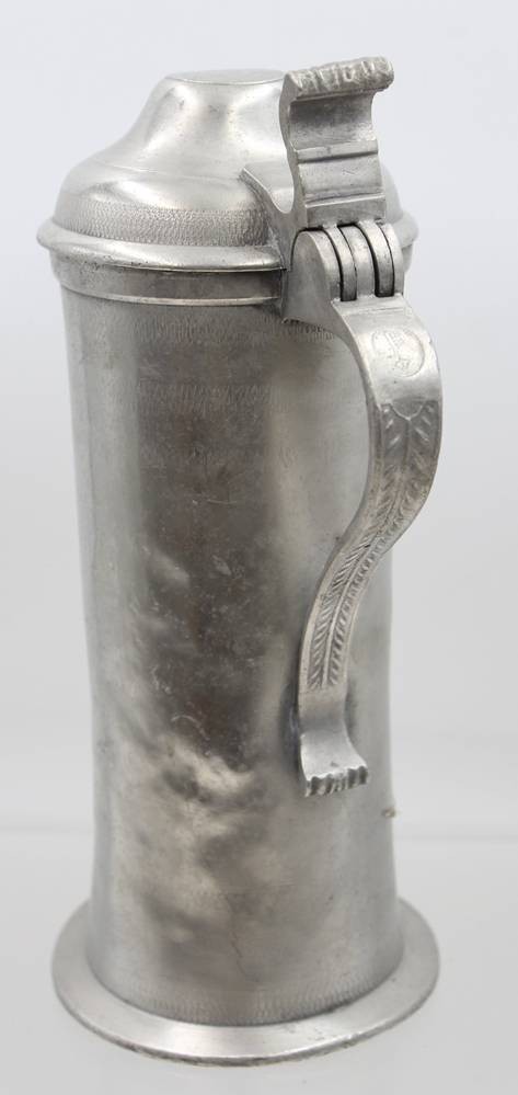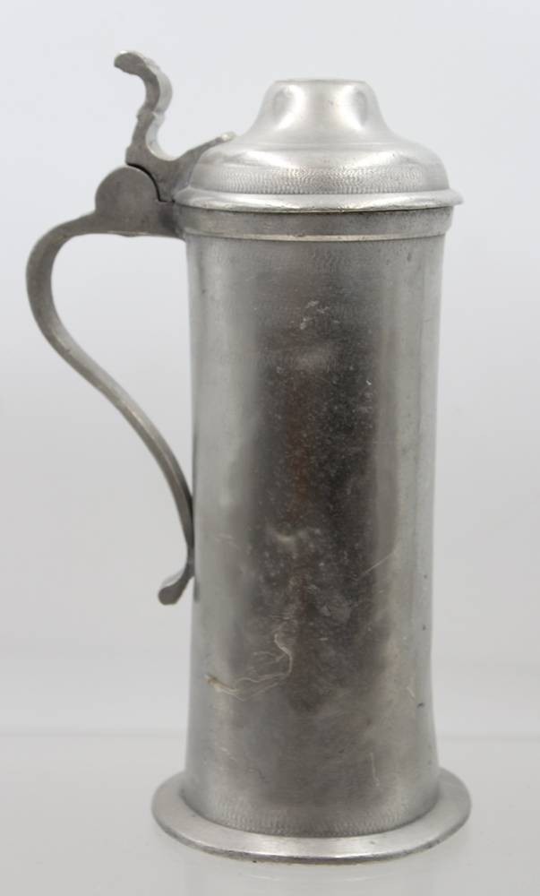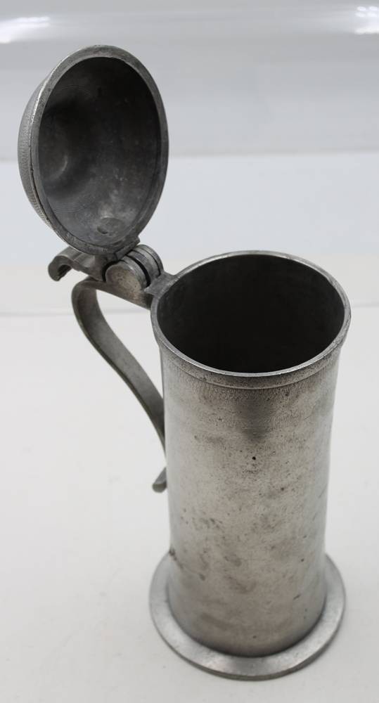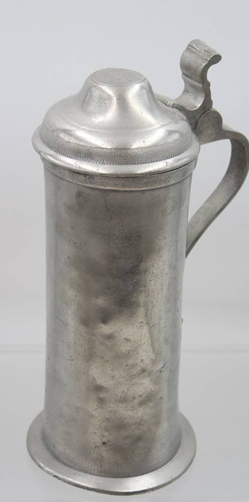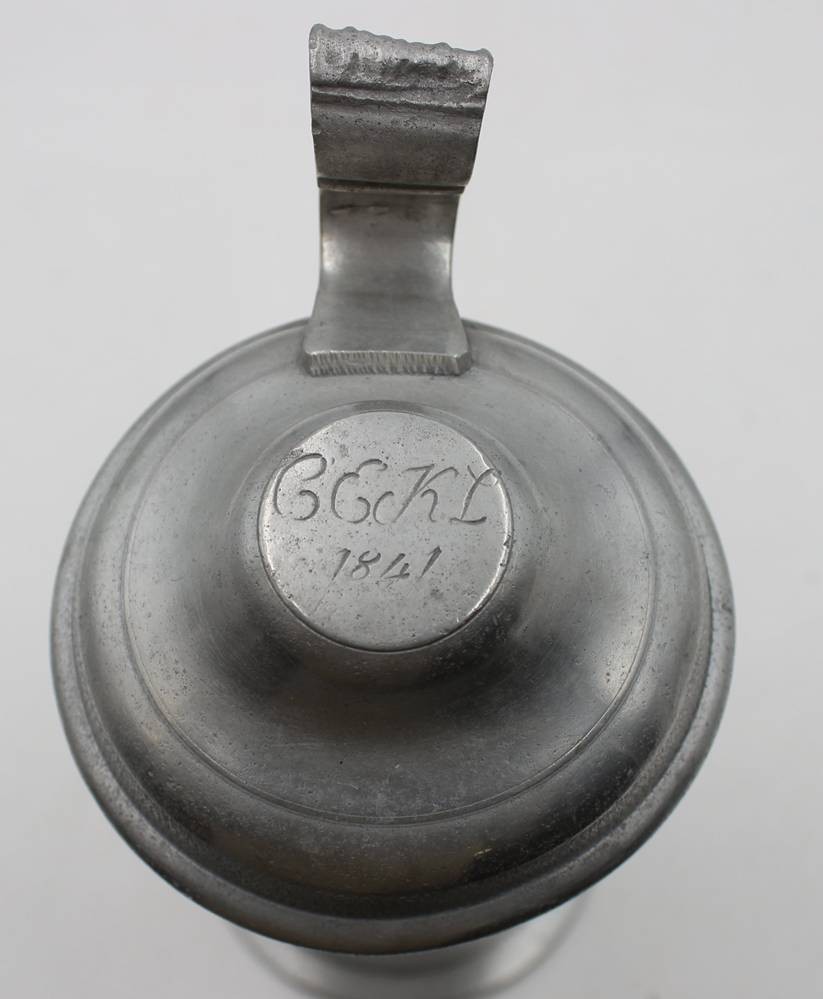 hoher Zinnkrug, Deckel monogrammiert und datiert 1841, Altersspuren, ca. H-28cm [1]