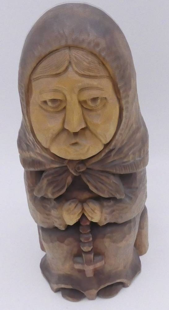 Holzschnitzerei, alte Frau, in Boden sign, (A.Kokadzetchu....?) wohl polnisch, H-25 cm [1]