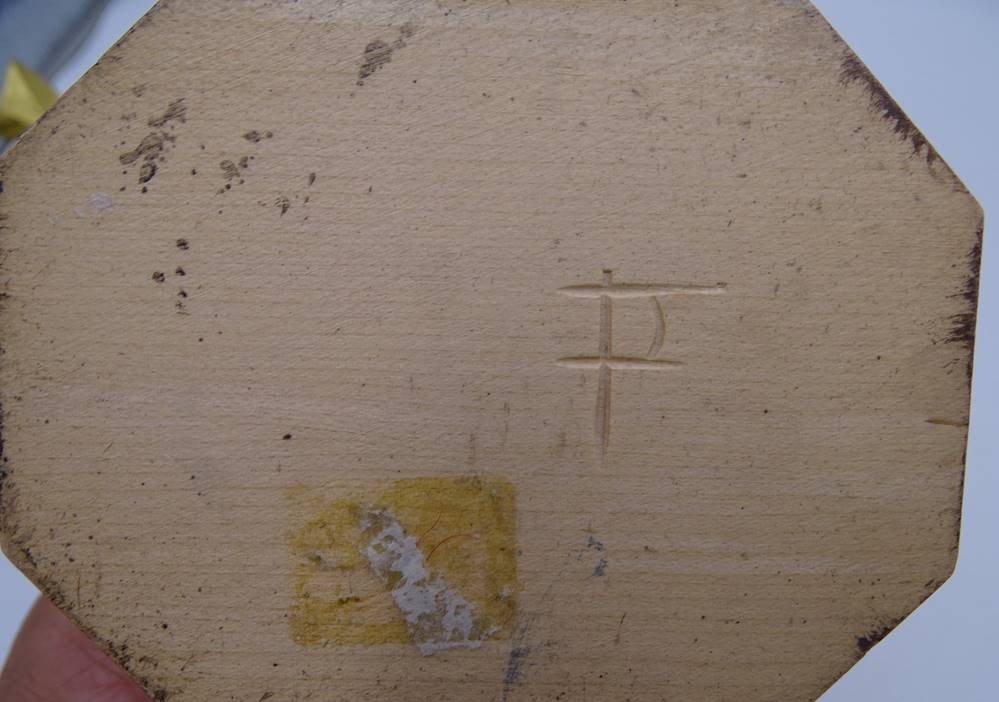Holzschnitzerei, Madonna mit Kind und Konsole, farbig gefasst, in Boden sign. FP, H-30 cm, gesamt mit Konsole 40 cm [1]