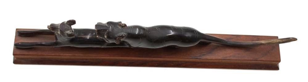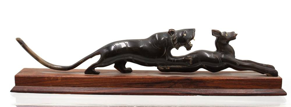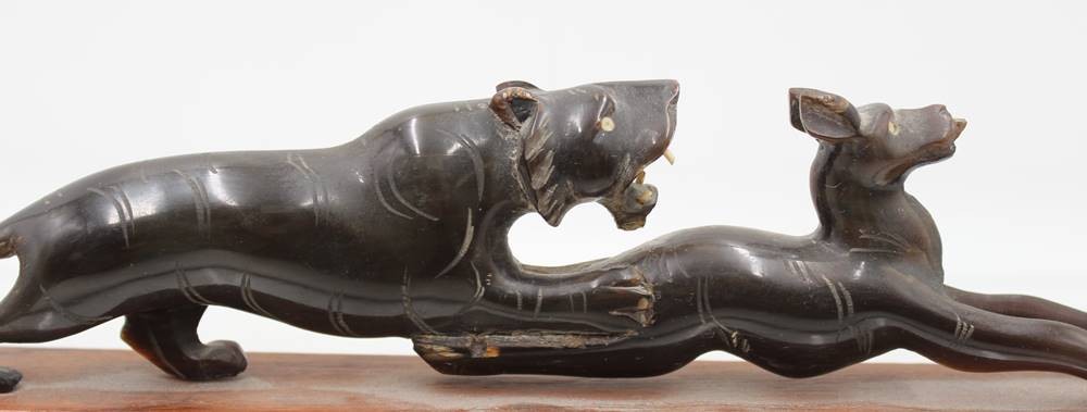 Hornschnitzerei, Tiger schlägt Antilope, wohl um 1920/30, H-7,5cm L-32,5cm [1]