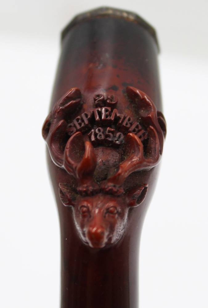 jagdl. Meerschaum-Pfeifenkopf, datiert "September 1859" in Etui, ca. L-7cm