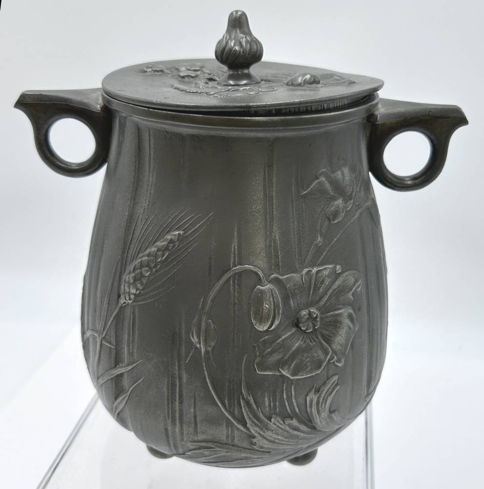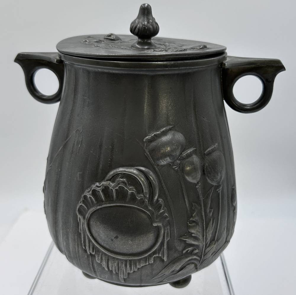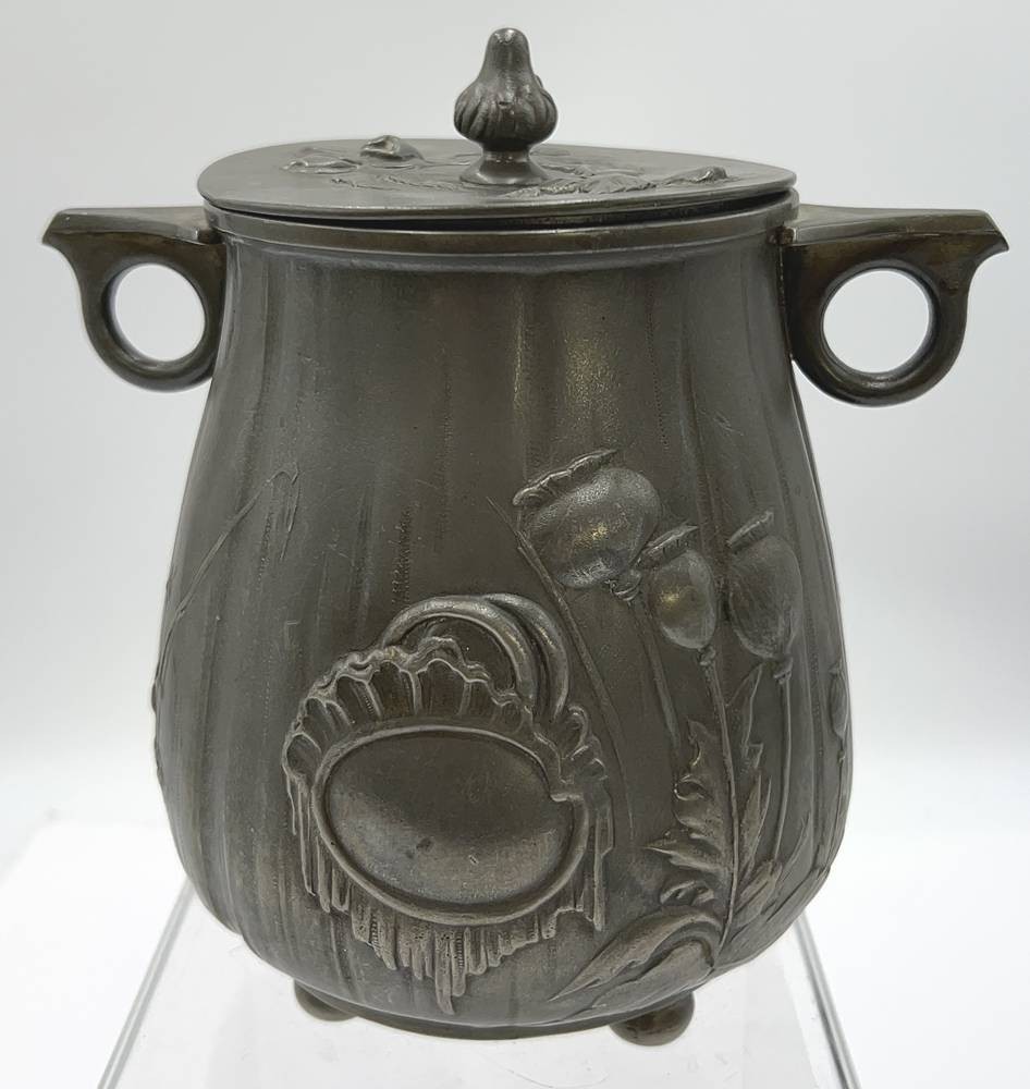 Jugendstil-Deckeldose, "Kayser Zinn" Modell Nr. 4045, guter Zustand, H-19 cm, B-19 cm [1]