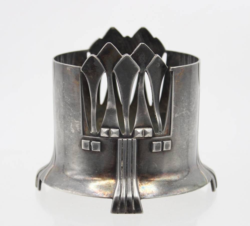 Jugendstil-Falschenhalter, WMF Straussenmarke, Nr. 345, leider beschädigt, ca. H-10cm D-9,5cm [1]
