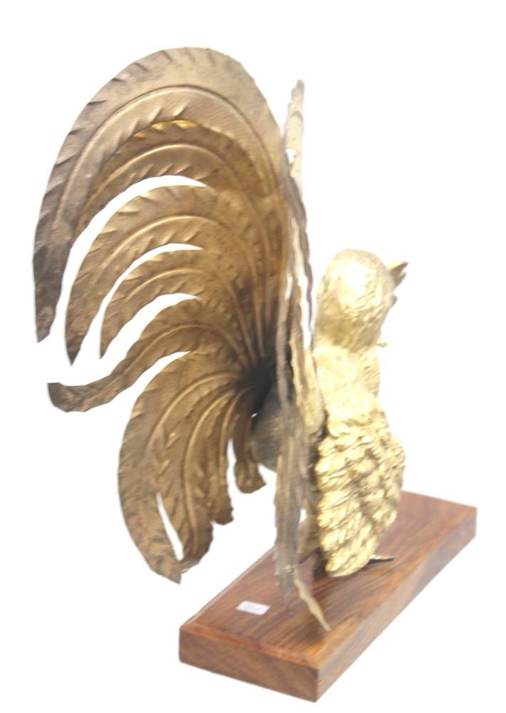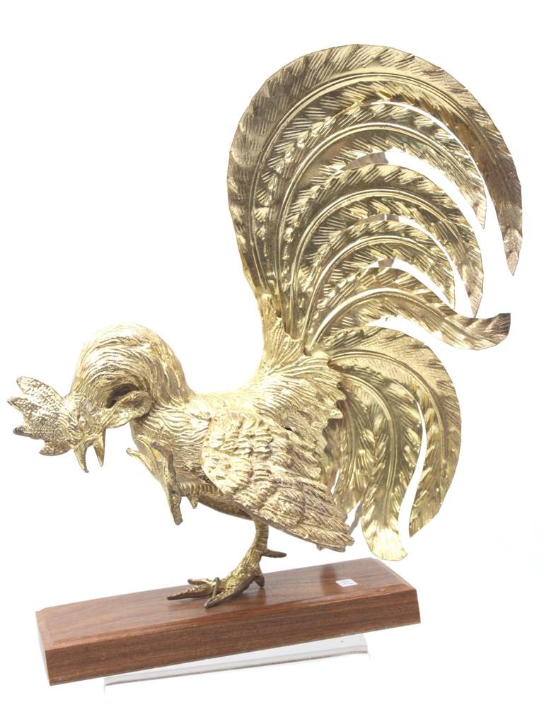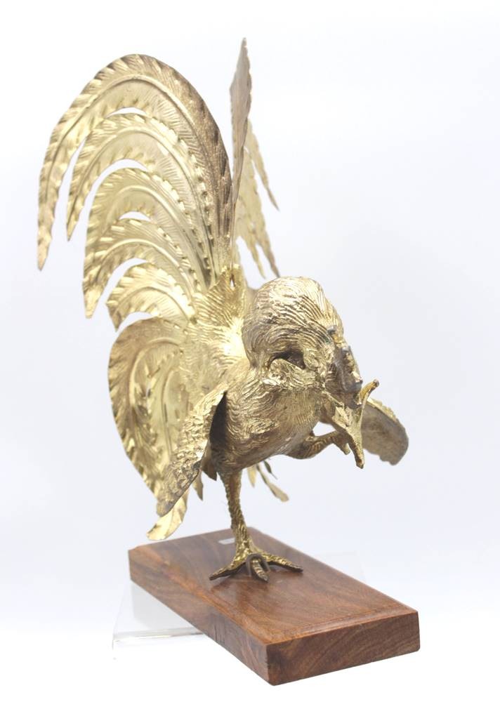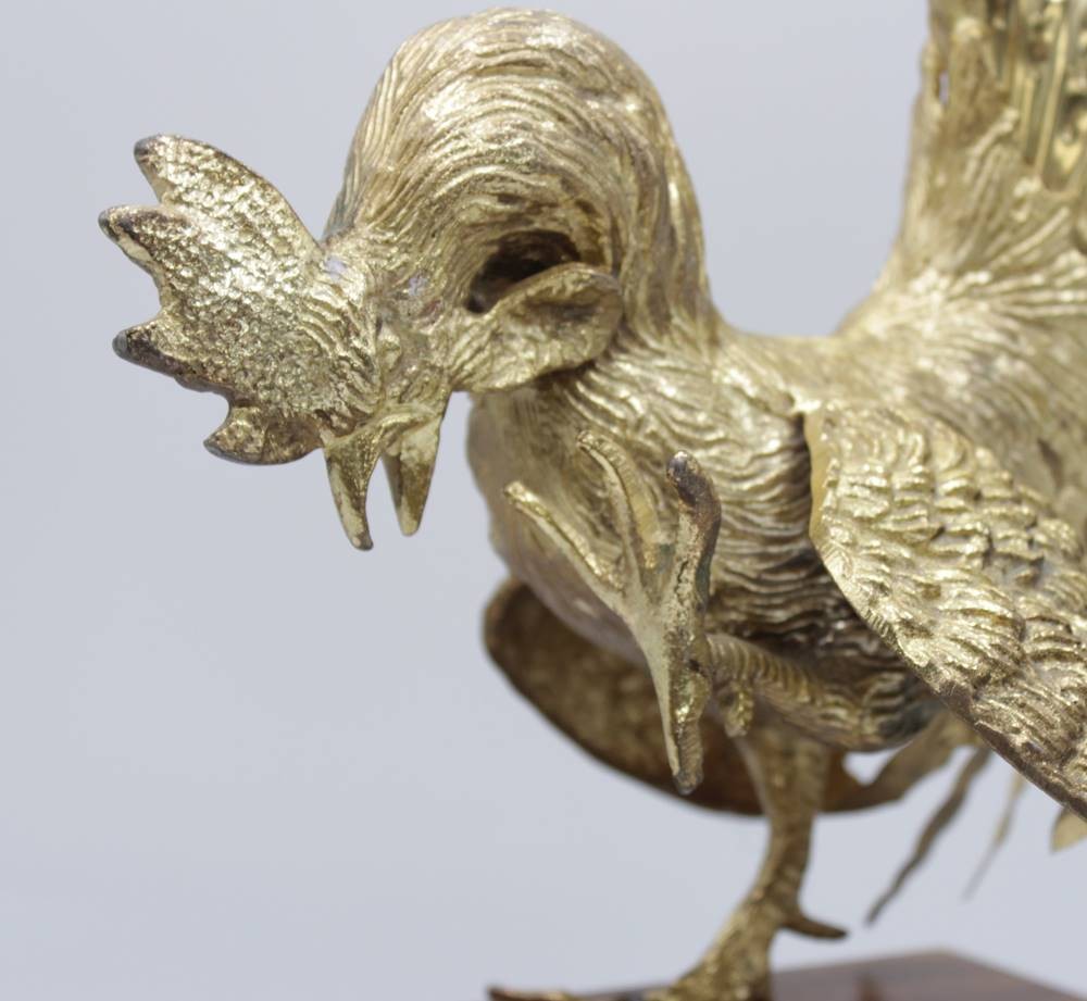 Kampfhahn auf Holzstand, Messing, H-34cm L-31cm [1]