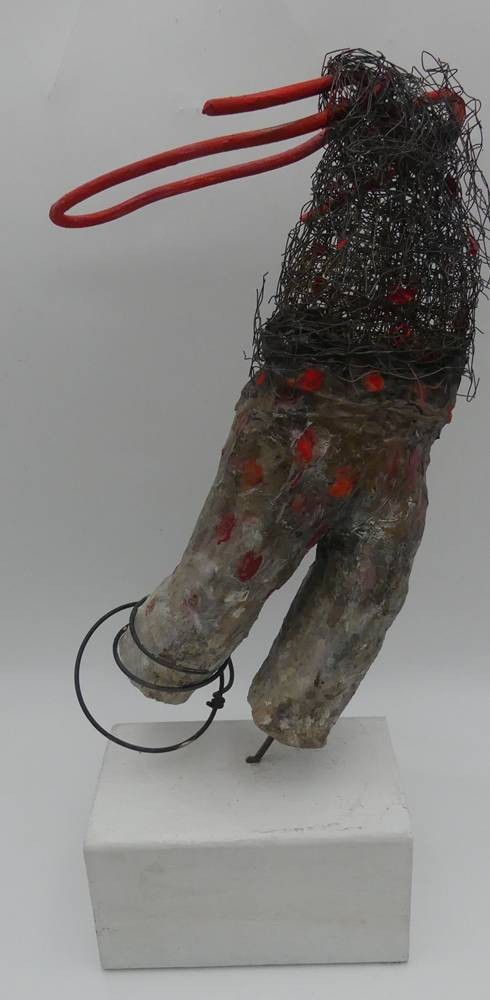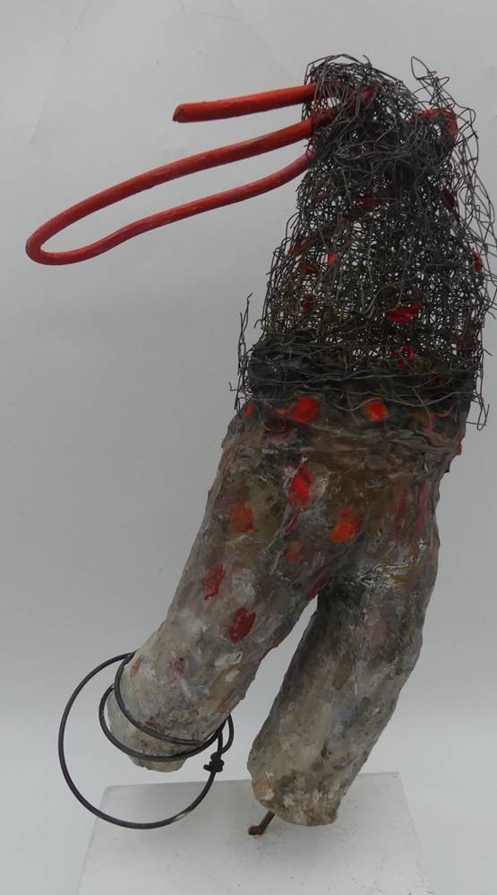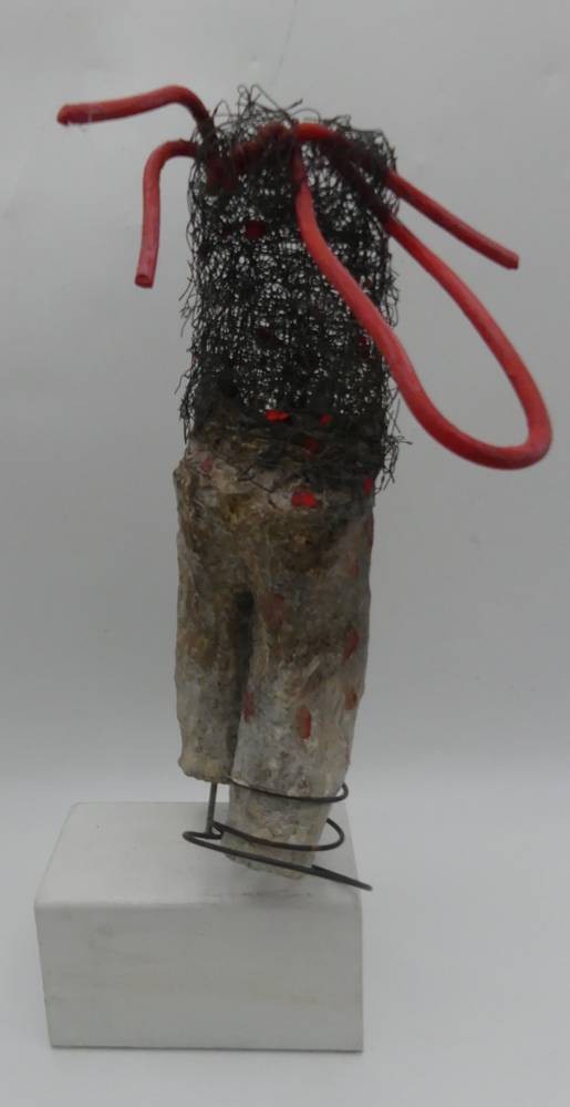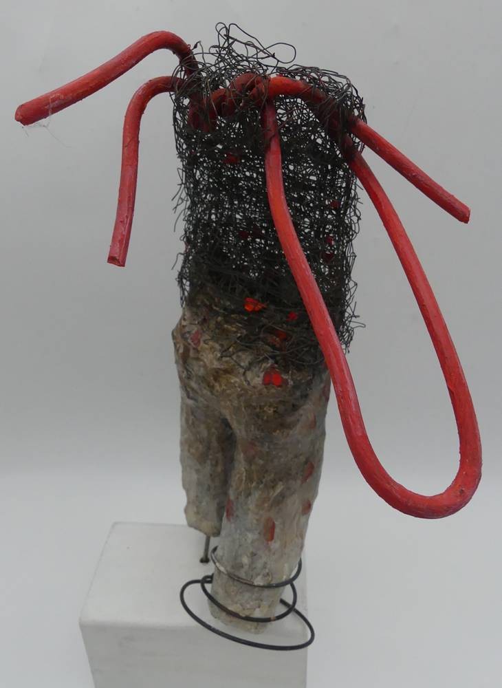 Kirsten Berg /XX), 2017, Hamburger Künstlerin "Ohne Titel", Skulptur auf Holzsockel, Kunstmasse, Draht und Metall, H-zus. 40 cm [1]