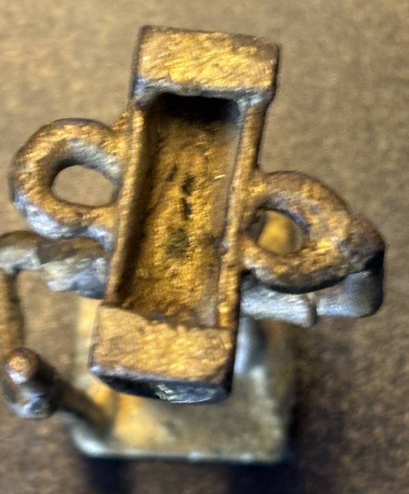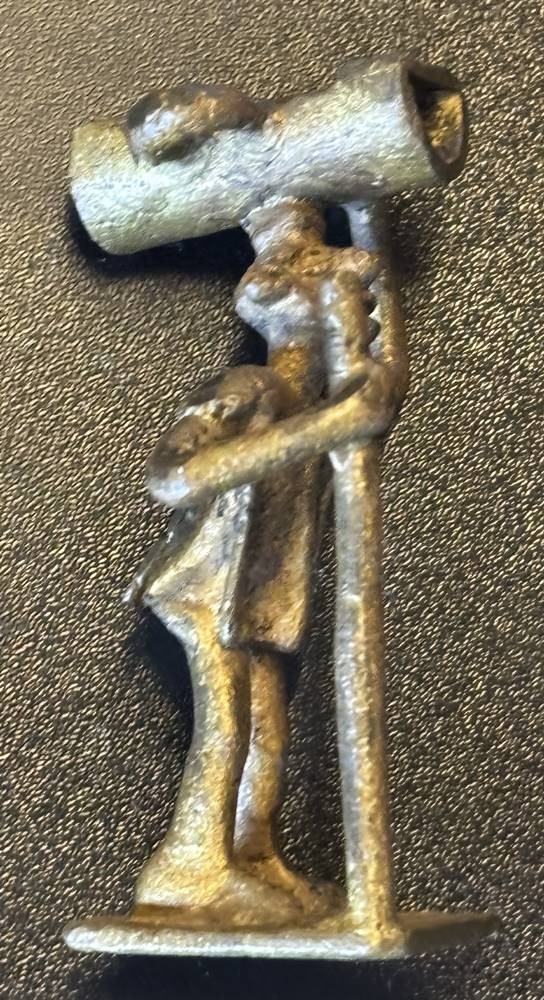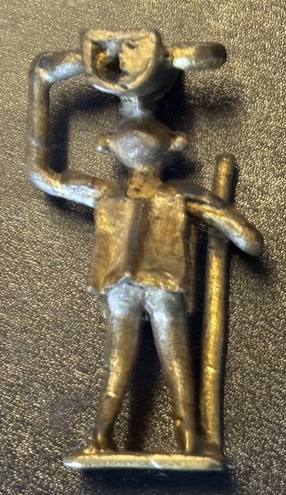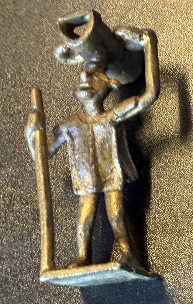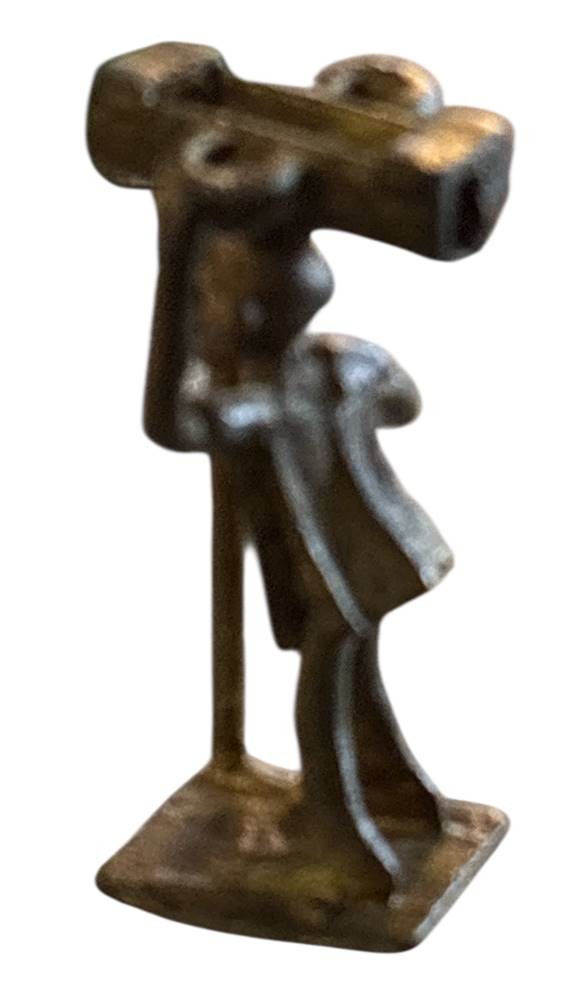 kl. Bronze Mann mit Stab, wohl Schalen-Stand; h-/ CM [1]