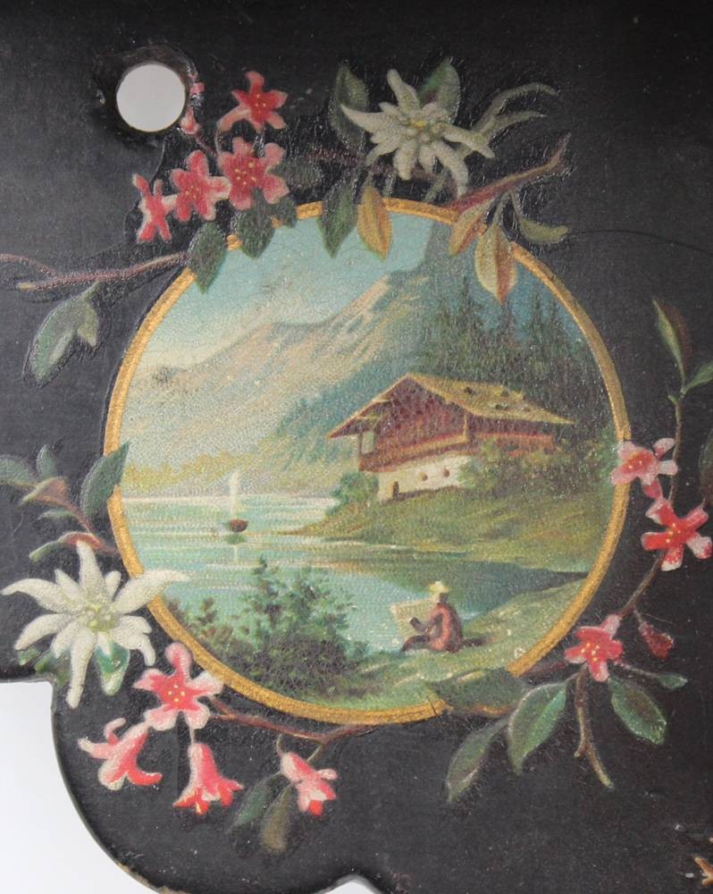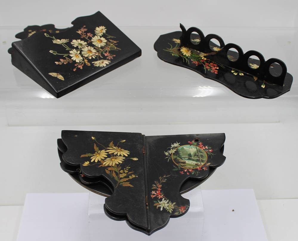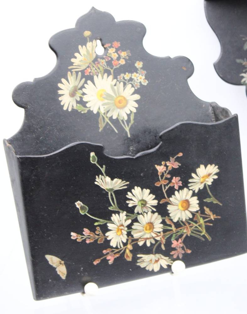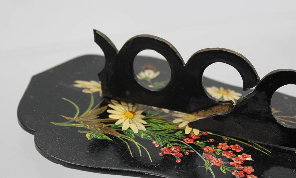 kl. Eckregal, Briefhalter o.ä. und Wandhalterung diese beschädigt, floral bemalt, Regal 25 x 18,5cm [1]