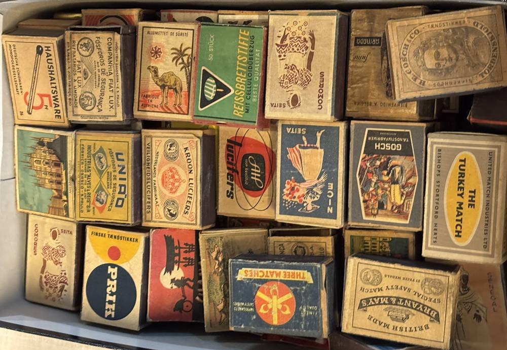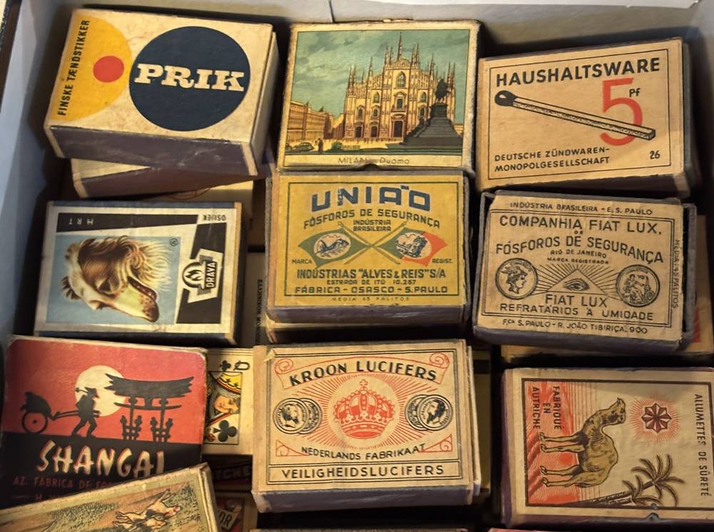 kl. Karton voller Zündholzschachteln aus aller Welt, 30-50-er Jahren. ca. 50 bis 60 Stück [1]