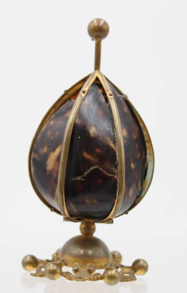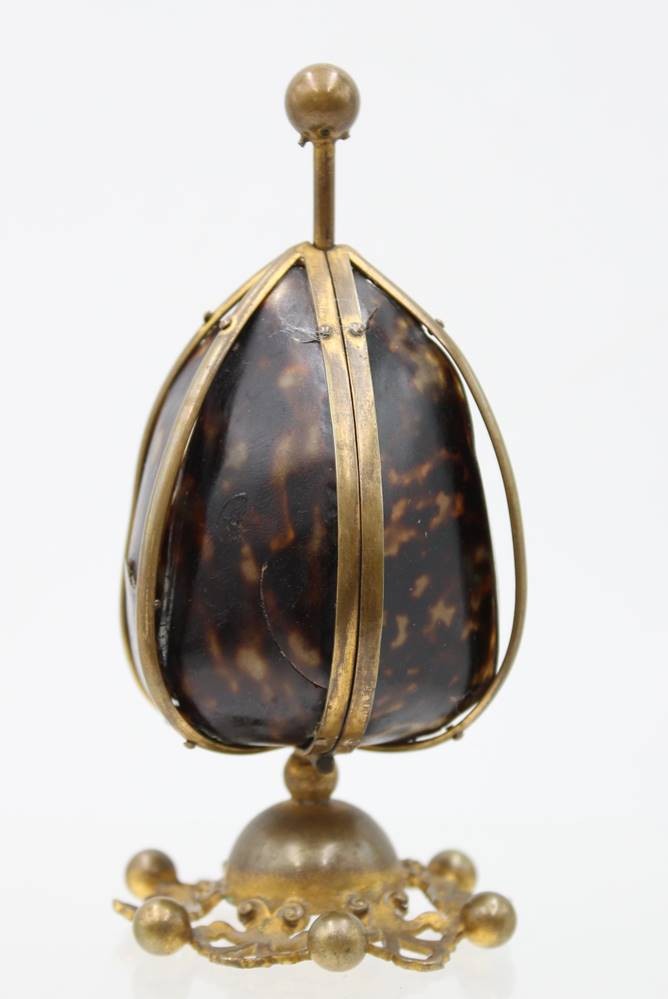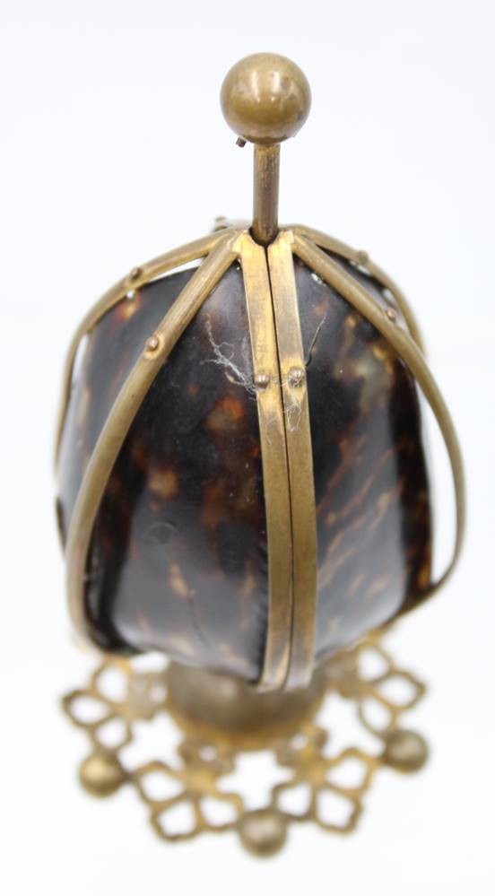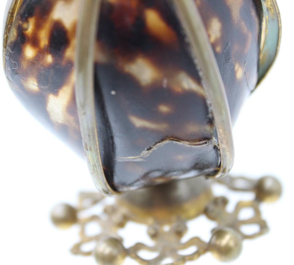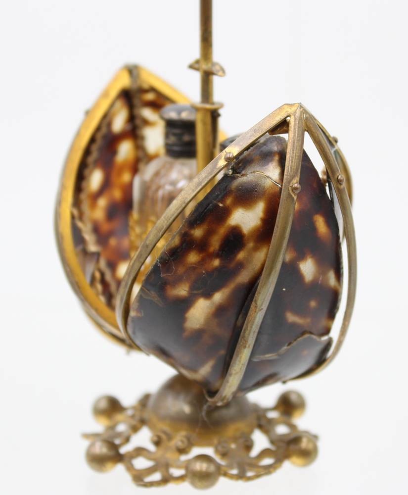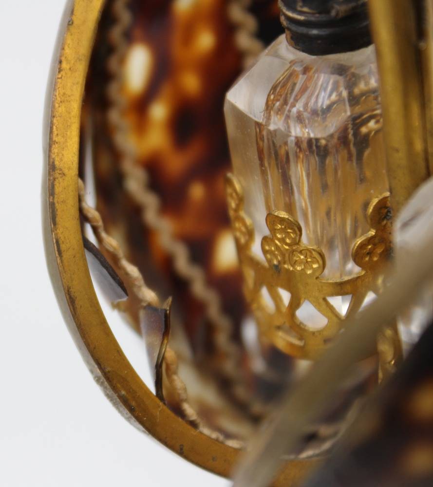 kl. Menage mit klappbarer Schildpatt--Hülle, diese beschädigt, 2 Mini-Flacons, Kristall mit Silberdeckel, wohl Mitte 19.Jhd. [1]