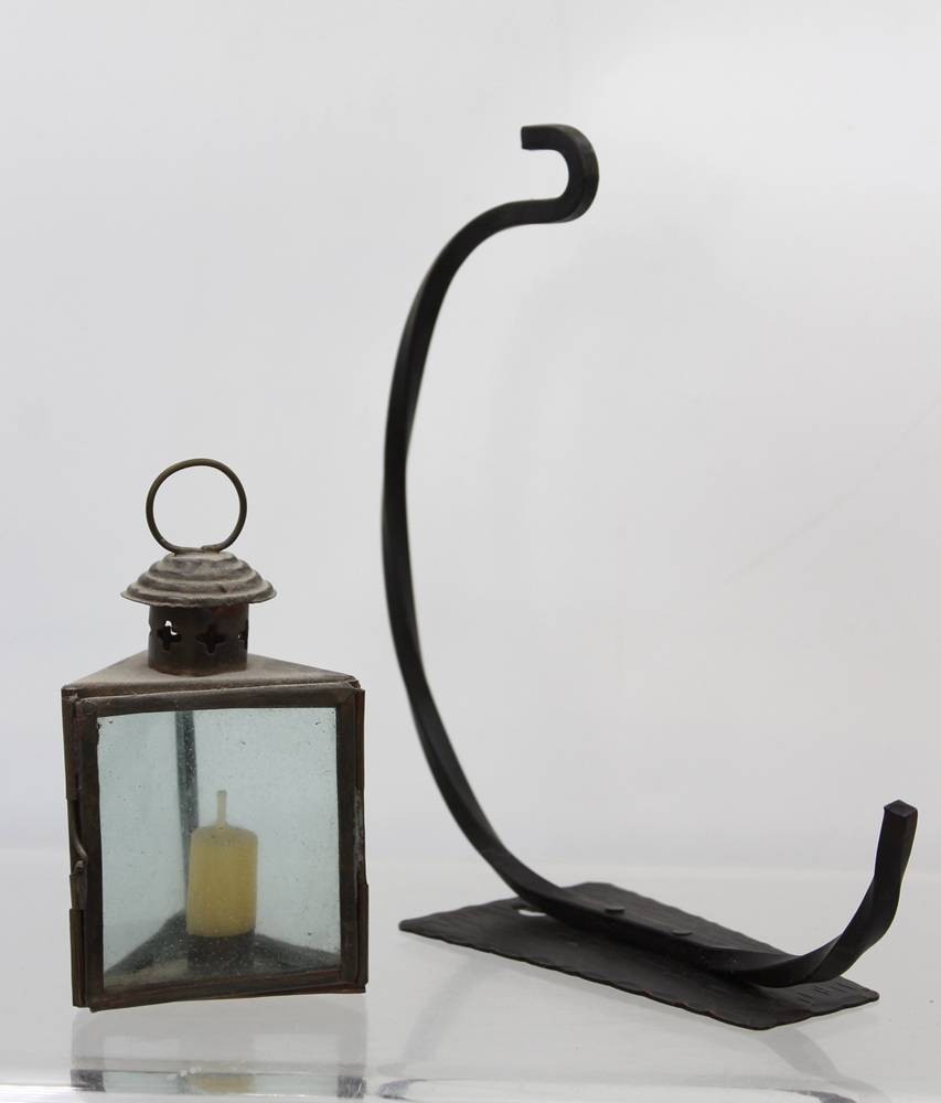kl. Windlicht mit Metall-Wandhalterung, älter, ca. T-20,5cm