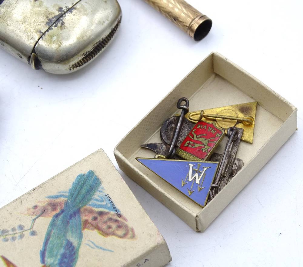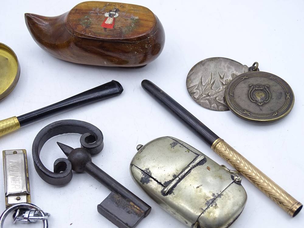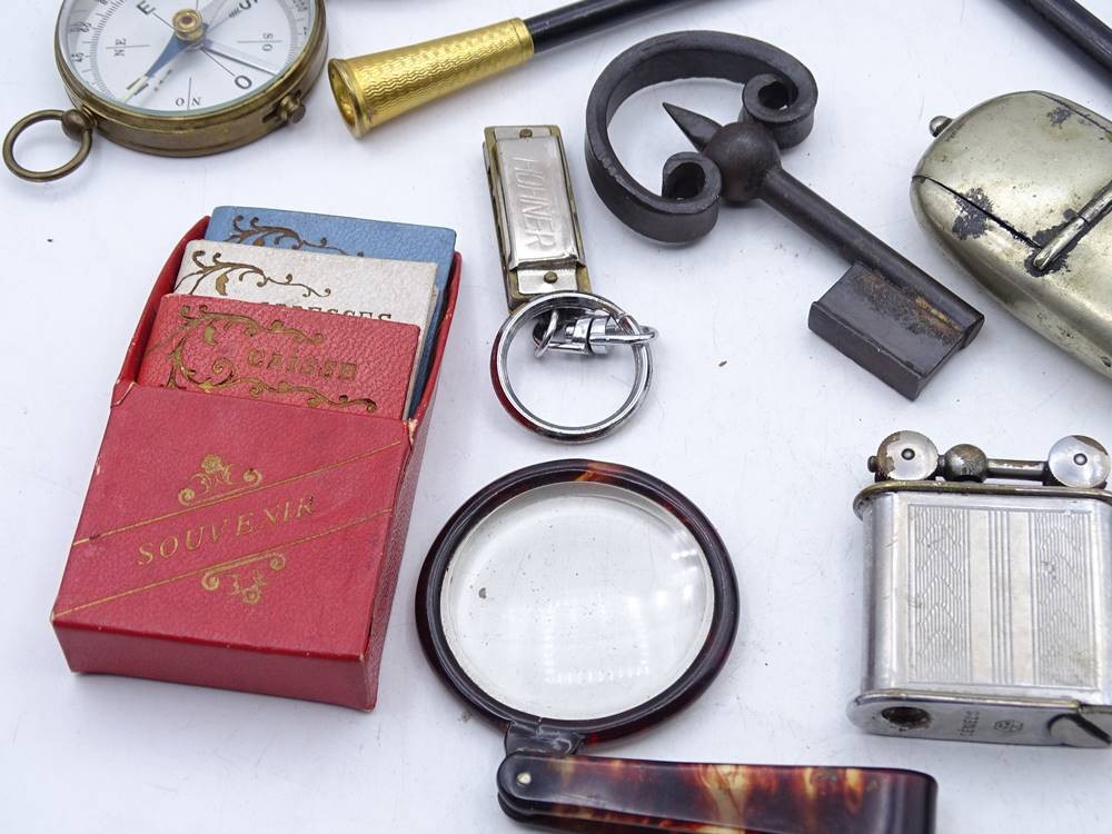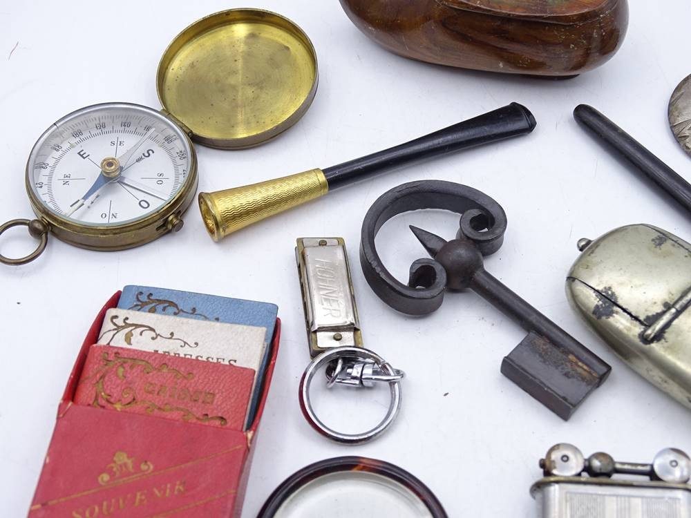 Konvolut div. alter Gegenstände, Notizbuch,Tabatiere, Spiegel,Schlüssel etc. [1]