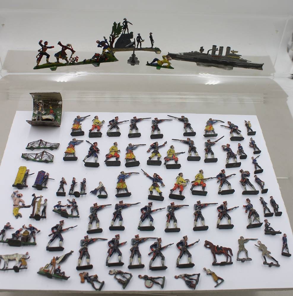 Konvolut div. Zinnfiguren, älter, meist bemalt, Altersspuren [1]