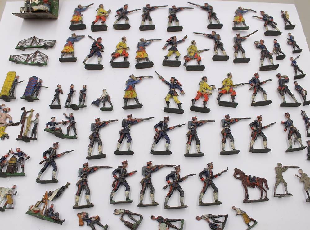 Konvolut div. Zinnfiguren, älter, meist bemalt, Altersspuren