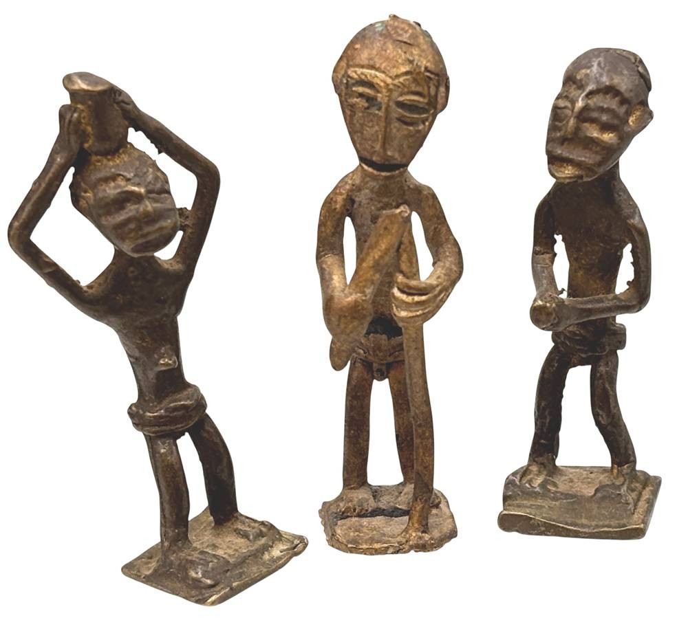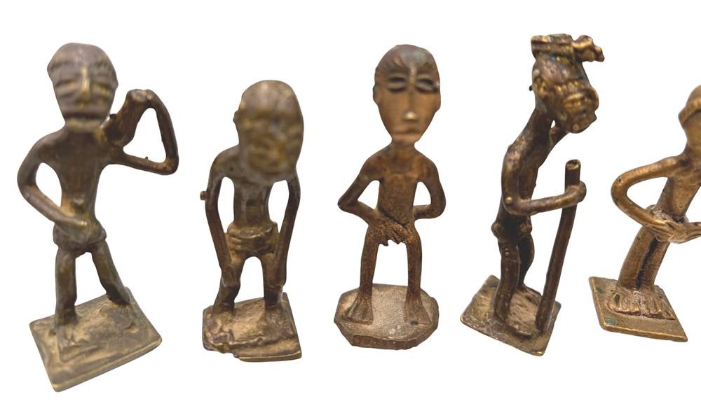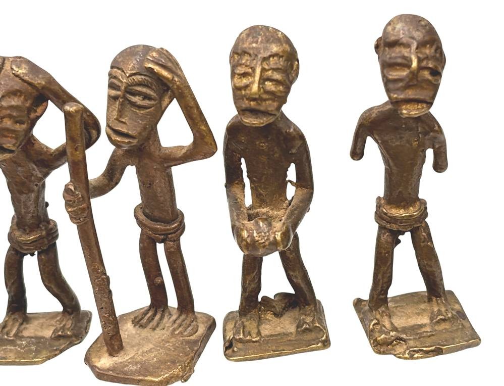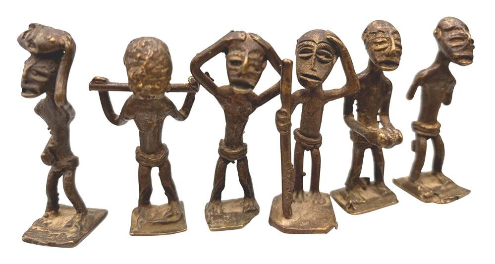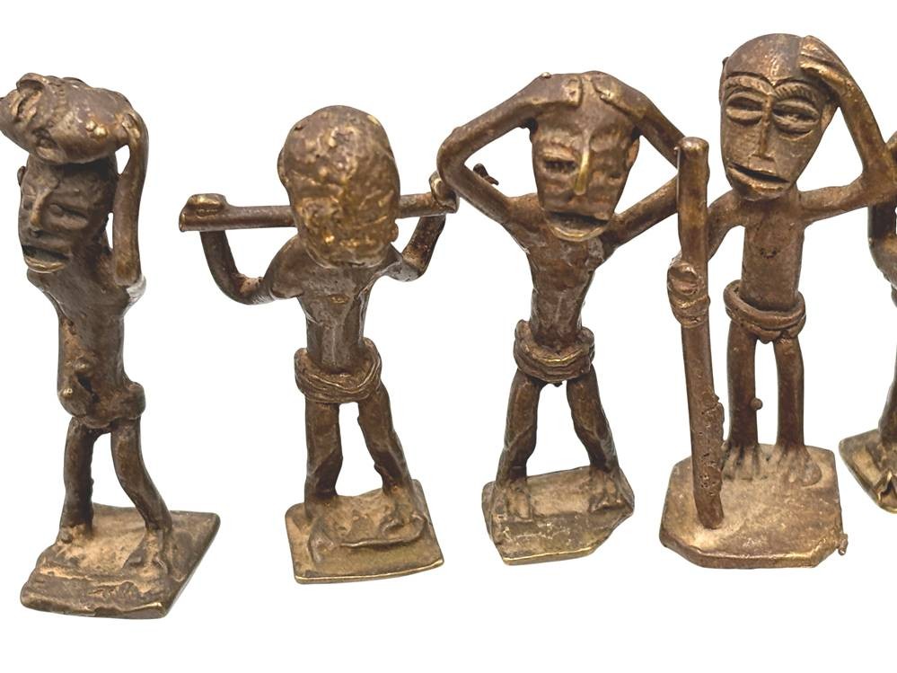 Kudou Bronzegefäß der Ashanti H-28 cm, mit 22 kl. Bronze-Figuren, je ca. H-9 cm [1]