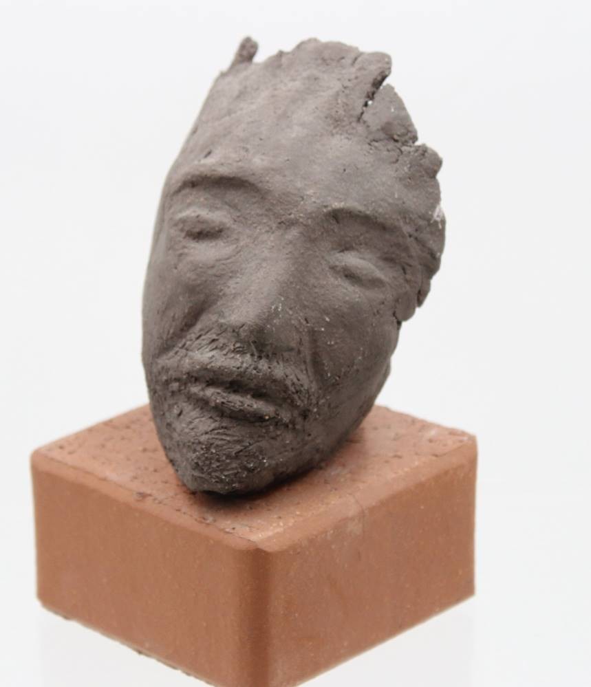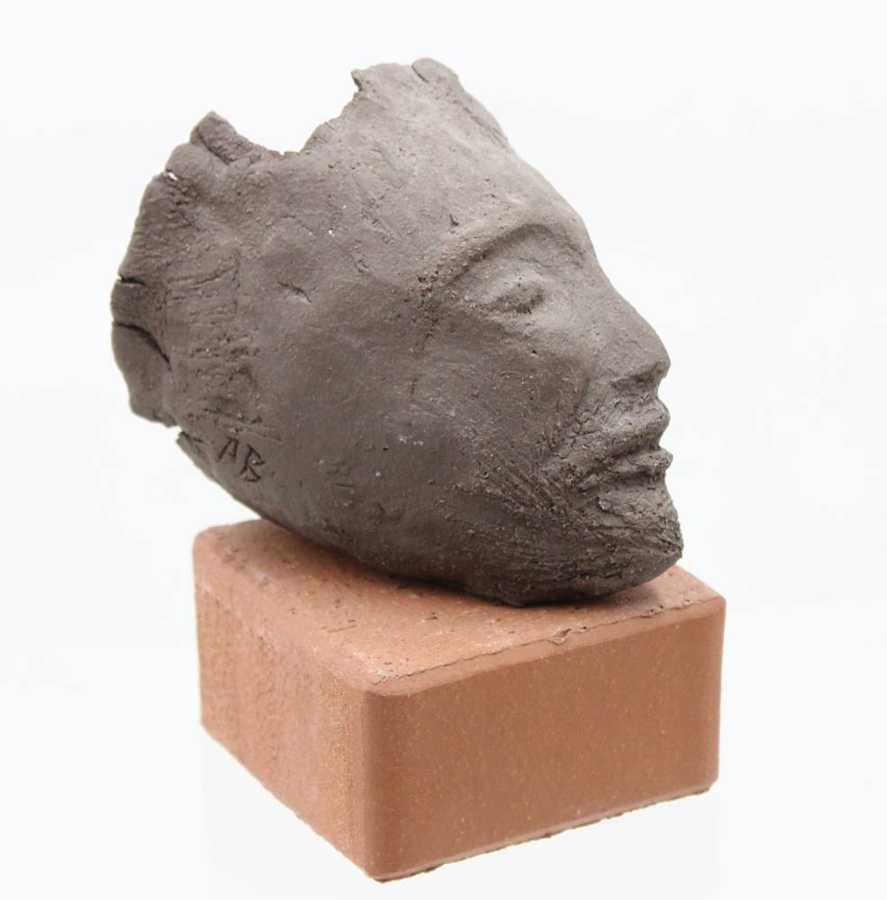 Kunstobjekt, Männerkopf auf Stein, braunes Steinzeug, monogrammiert "AB", ca. H-16cm B-9,5cm [1]