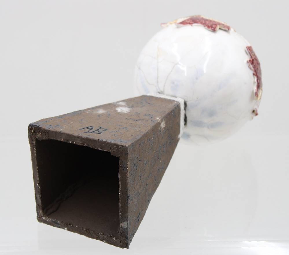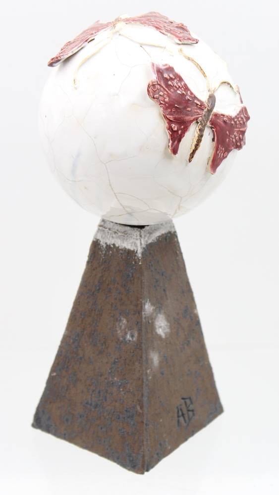 Kunstobjekt, Steinzeug, monogrammiert "AB", ca. H-26cm Kugel ca. D-11cm [1]