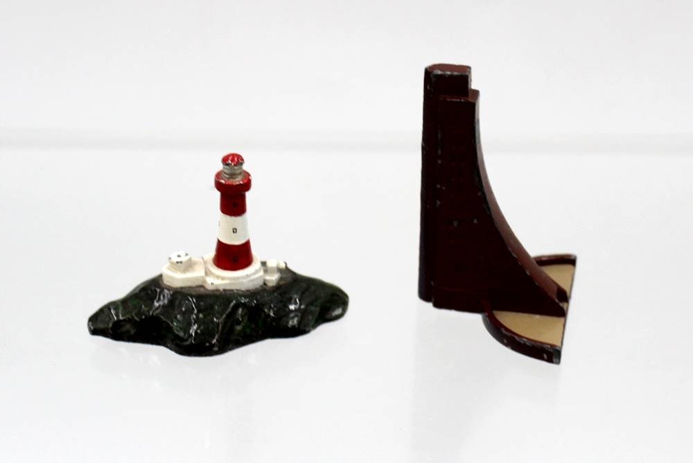 Leuchtturm mit Insel sowie Laboe, Wiking, älter, ca. H-6,5cm u. H-4,5cm [1]