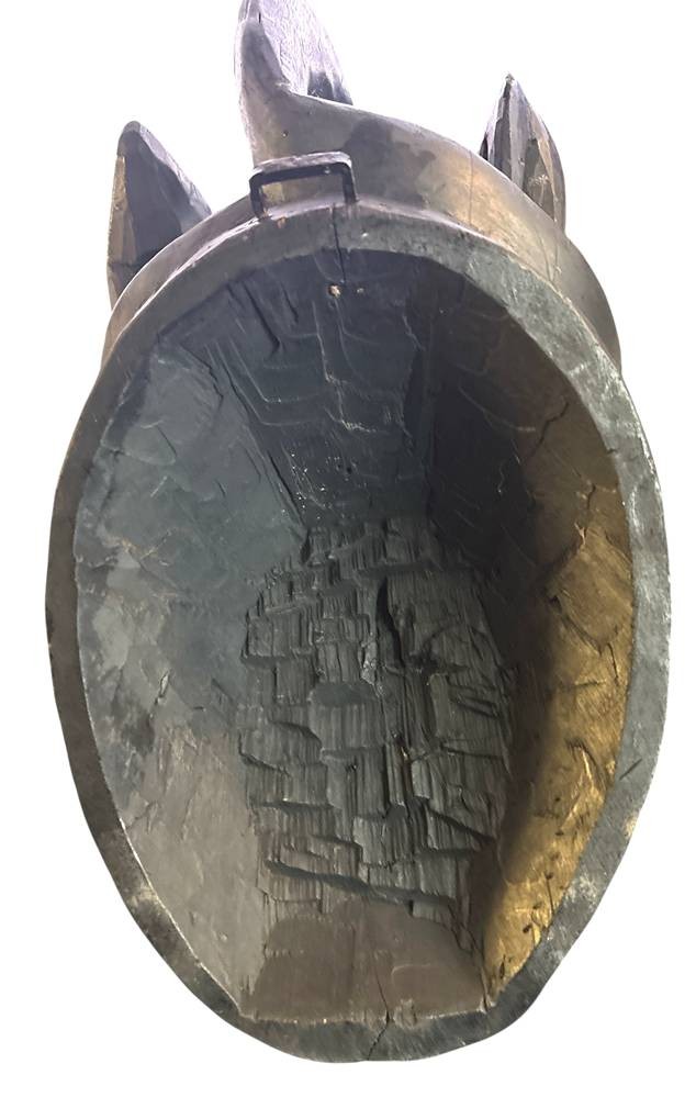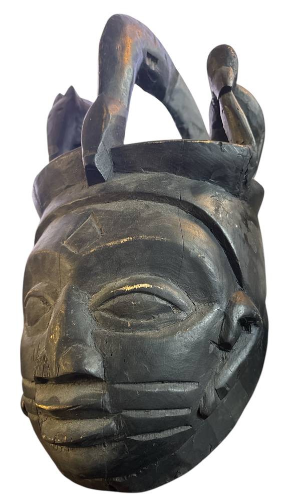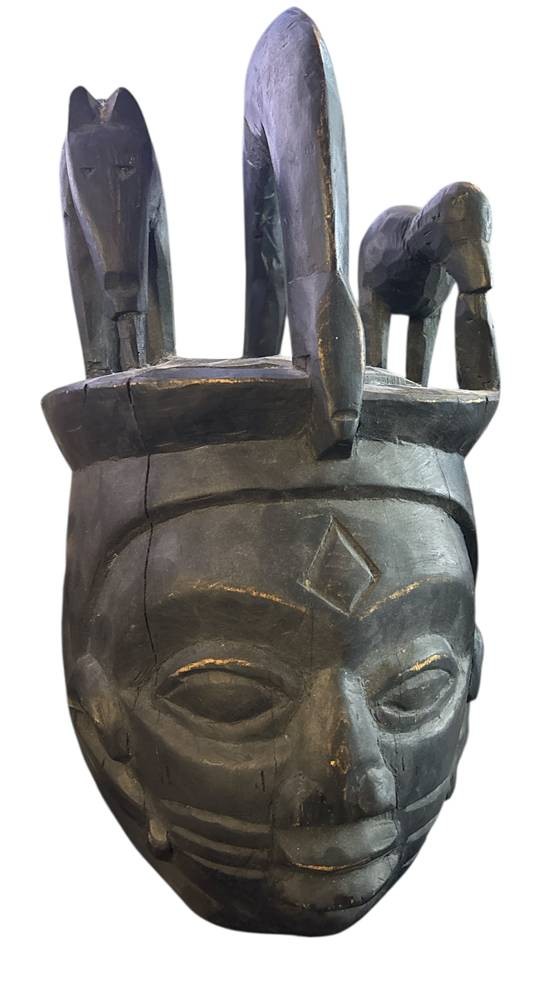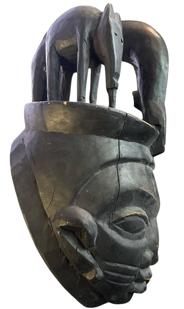 massive afrikan. Helmmaske der Bamileke, Altriss und Abplatzer, H-ca. 43 cm, B-22 cm [1]