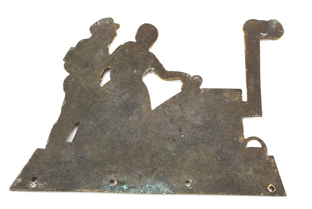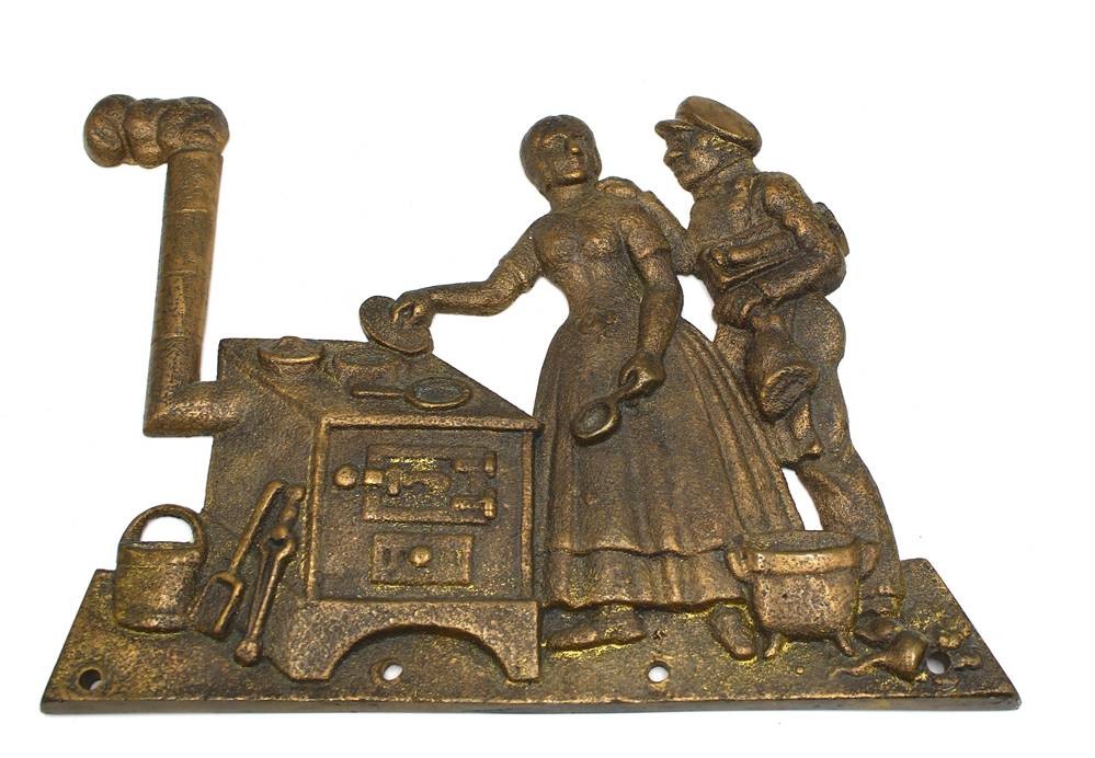 massive Messing-Wandplatte, Paar am Herd, 17x22 cm