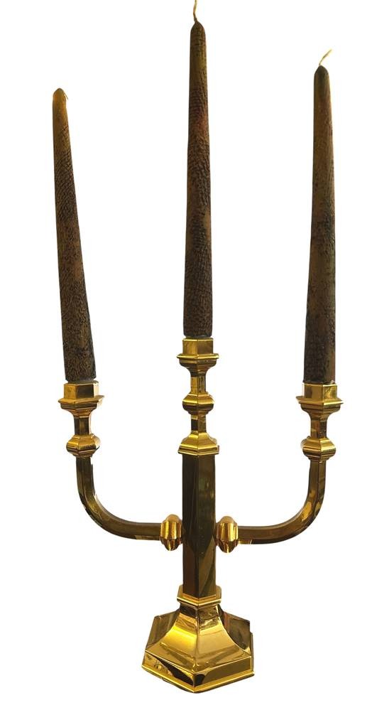 massiver 3-flammiger Messing-Kerzenhalter, H-25 cm (ohne Kerzenhalter), B-22 cm [1]