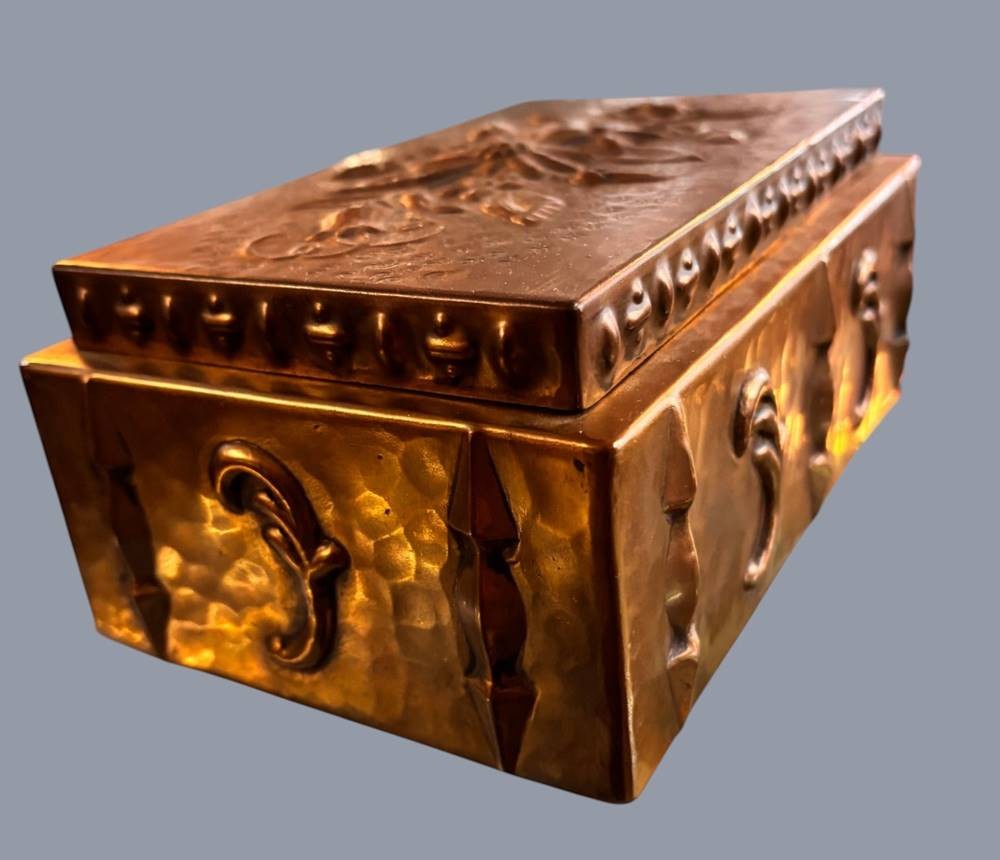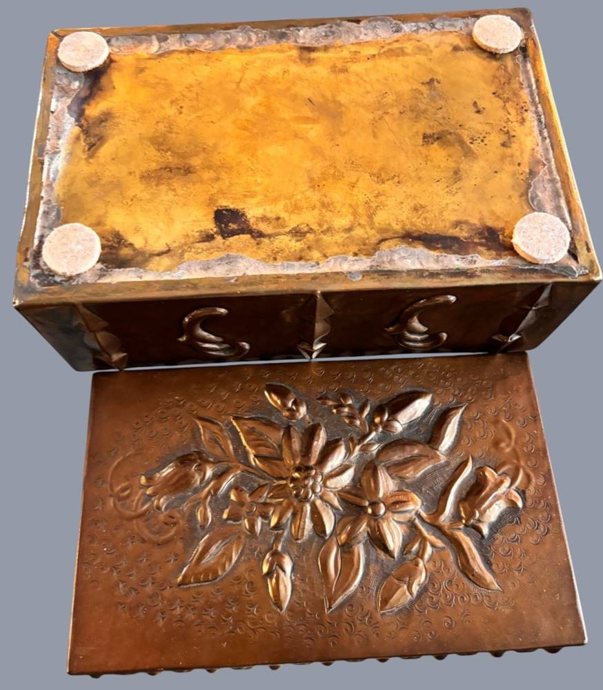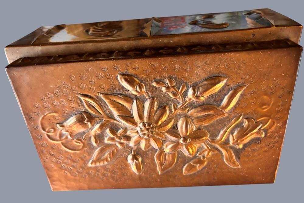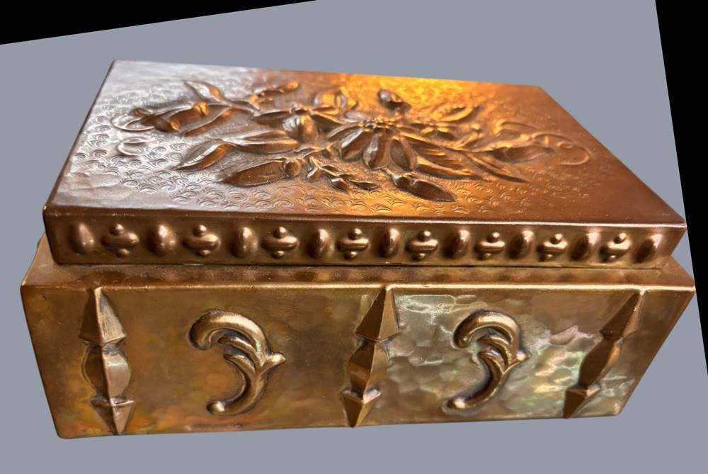 massiver Bronze-Kasten mit Blumenrelief, H-8,5 cm, 19x12,5 cm [1]