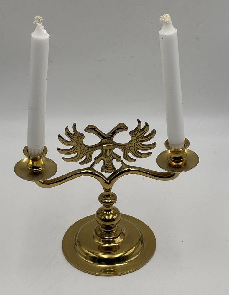 Messing Kerzenhalter mit Doppeladler, H-20 cm, B-25 cm