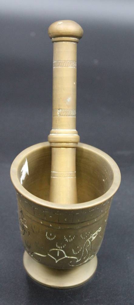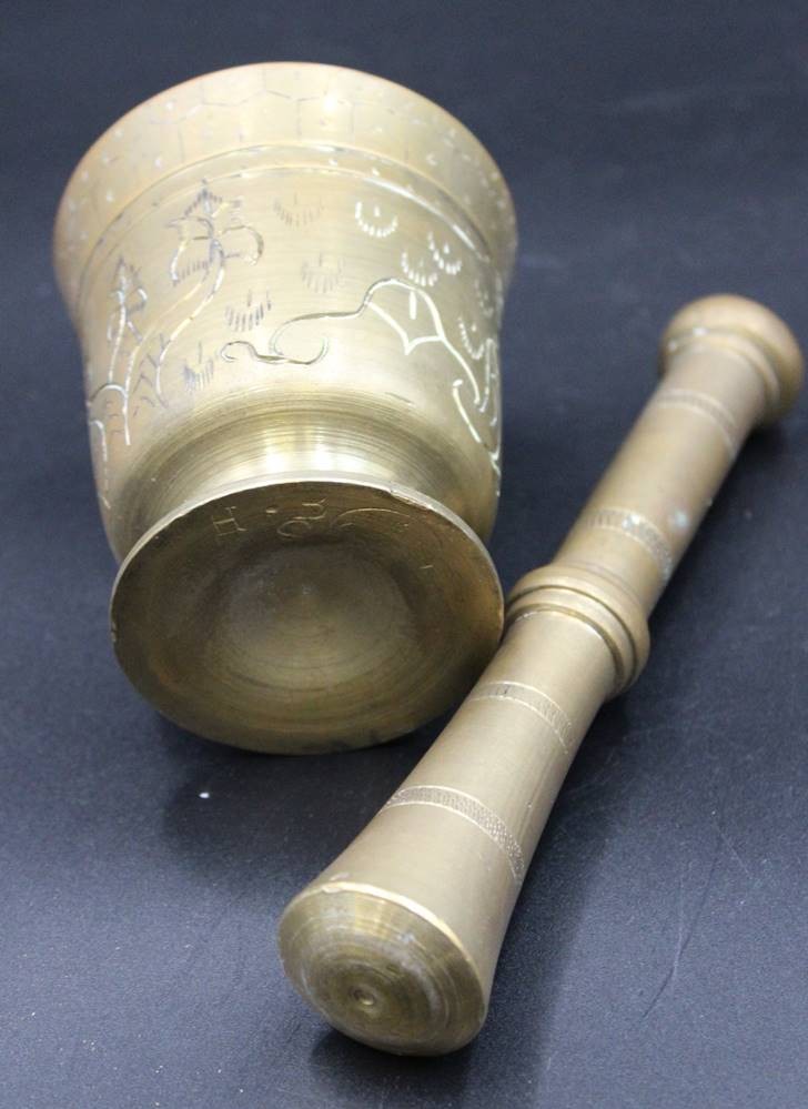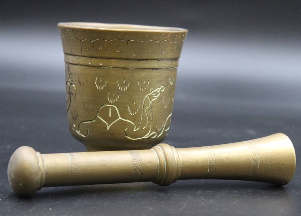 Messing-Mörser mit Stössel, wohl Nordafrika, gemarkt, ca. H-9cm [1]