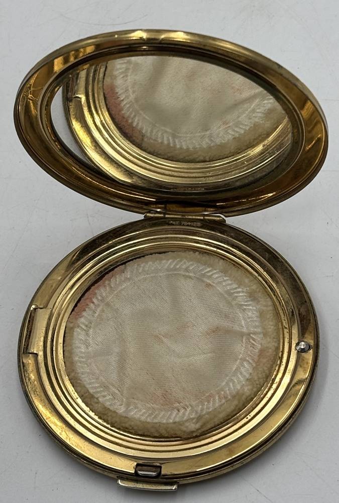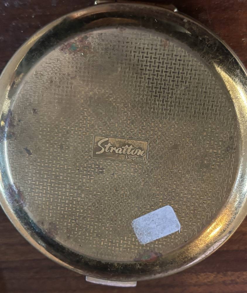 Messing-Puderdose "Stratton" Deckel Blumendekor, D-8,5 cm