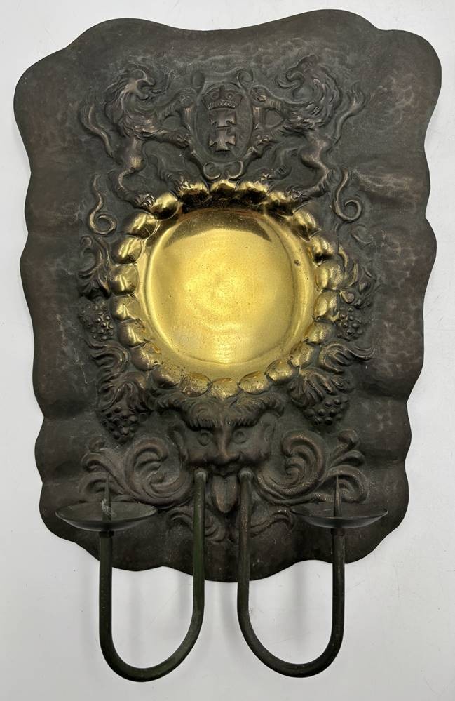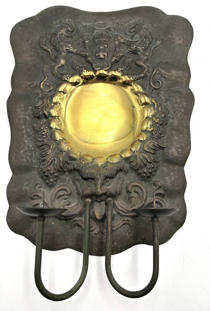 Messing Wandblaker mit Danzig Wappen, tw. geschwärzt, ca. 30x22 cm [1]