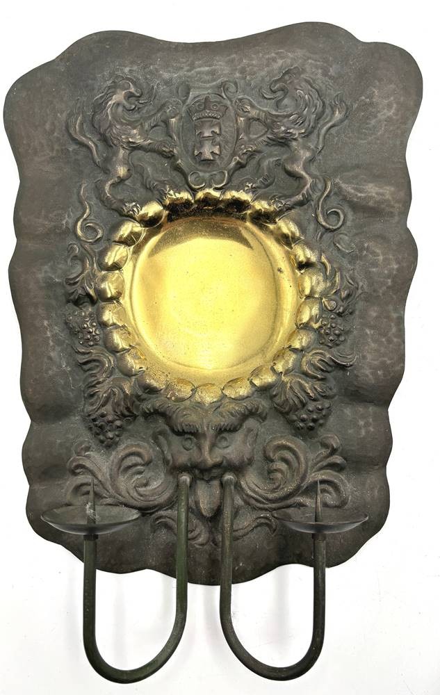 Messing Wandblaker mit Danzig Wappen, tw. geschwärzt, ca. 30x22 cm