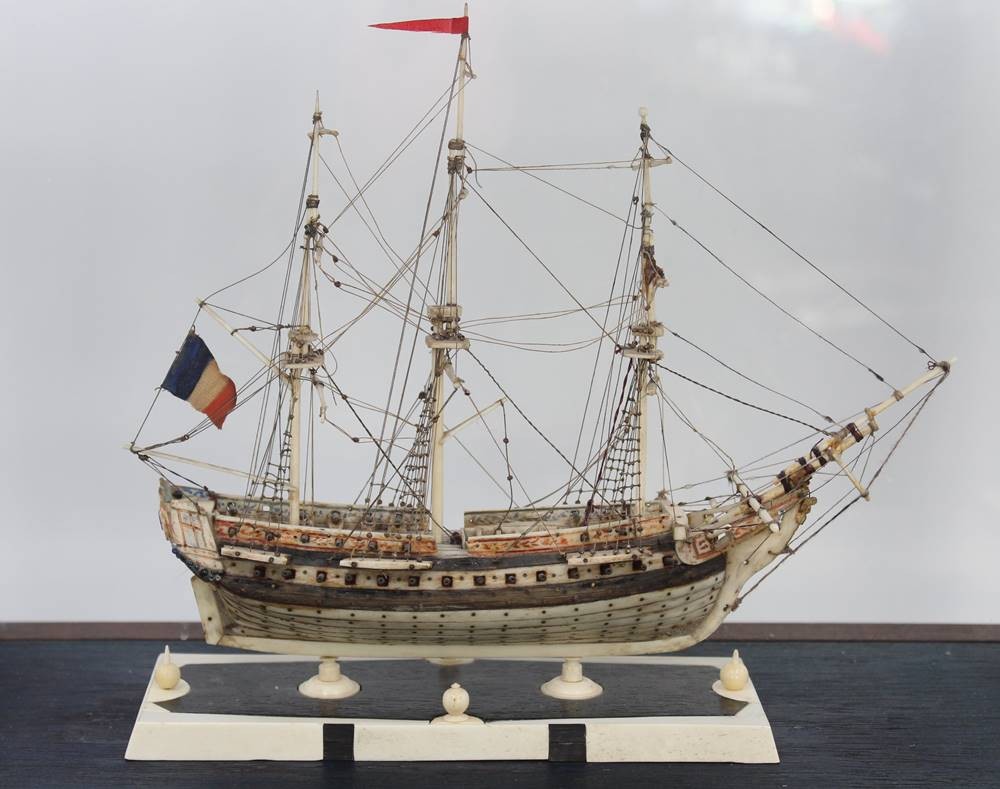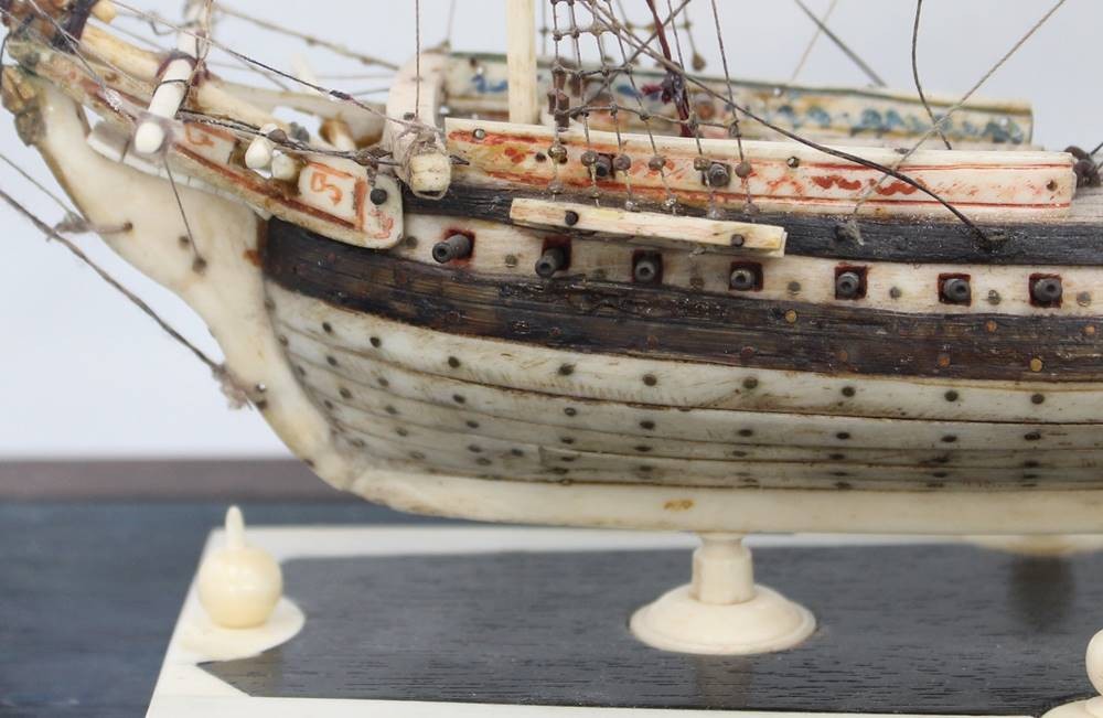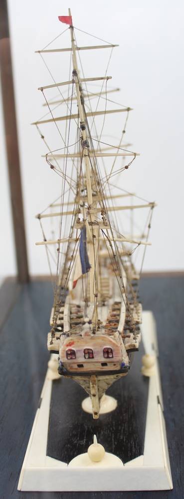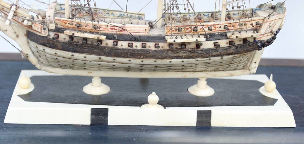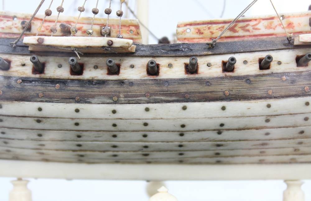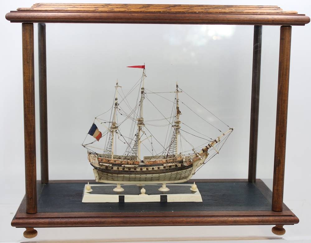 Napoleonisches "Prisoner of War" Knochenschiff, wohl 18./19. Jhd., in schönem Schaukasten, Kasten H-36cm B-44,5cm T-23,5cm [1]