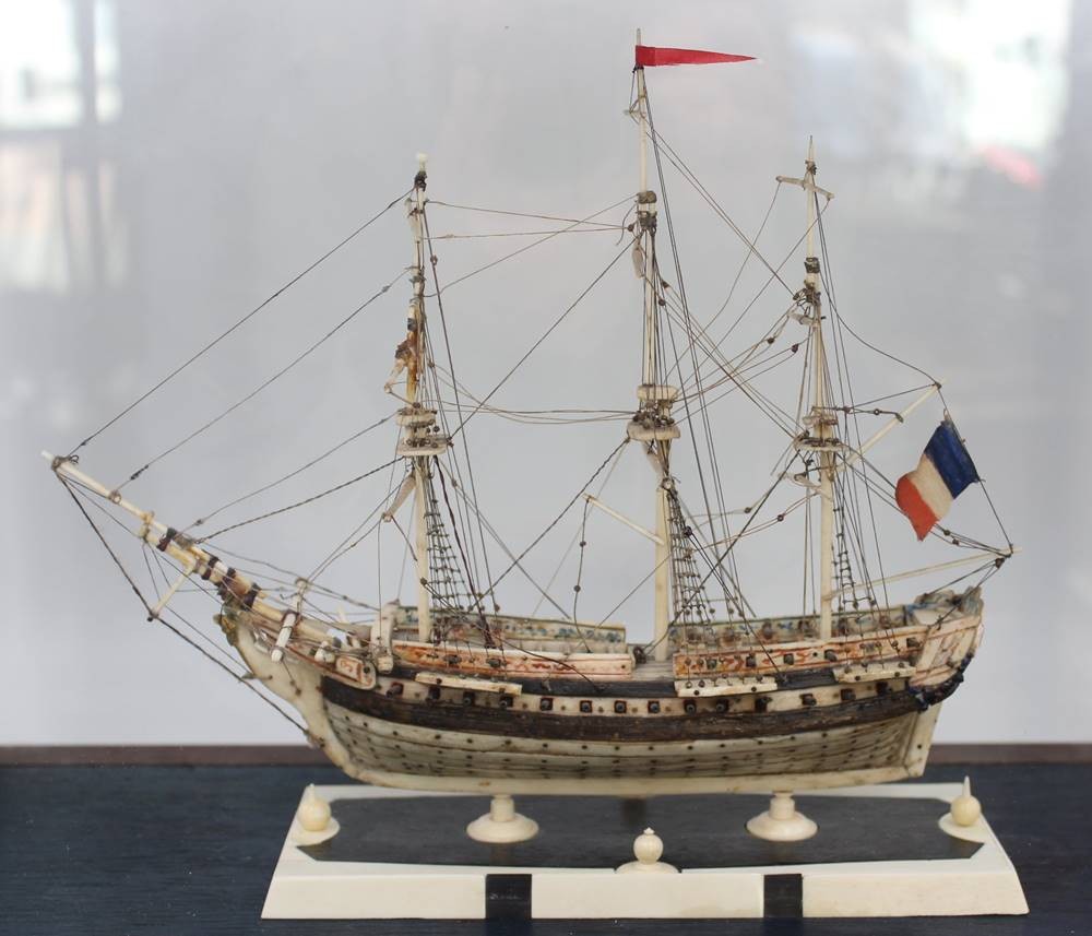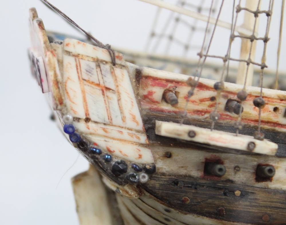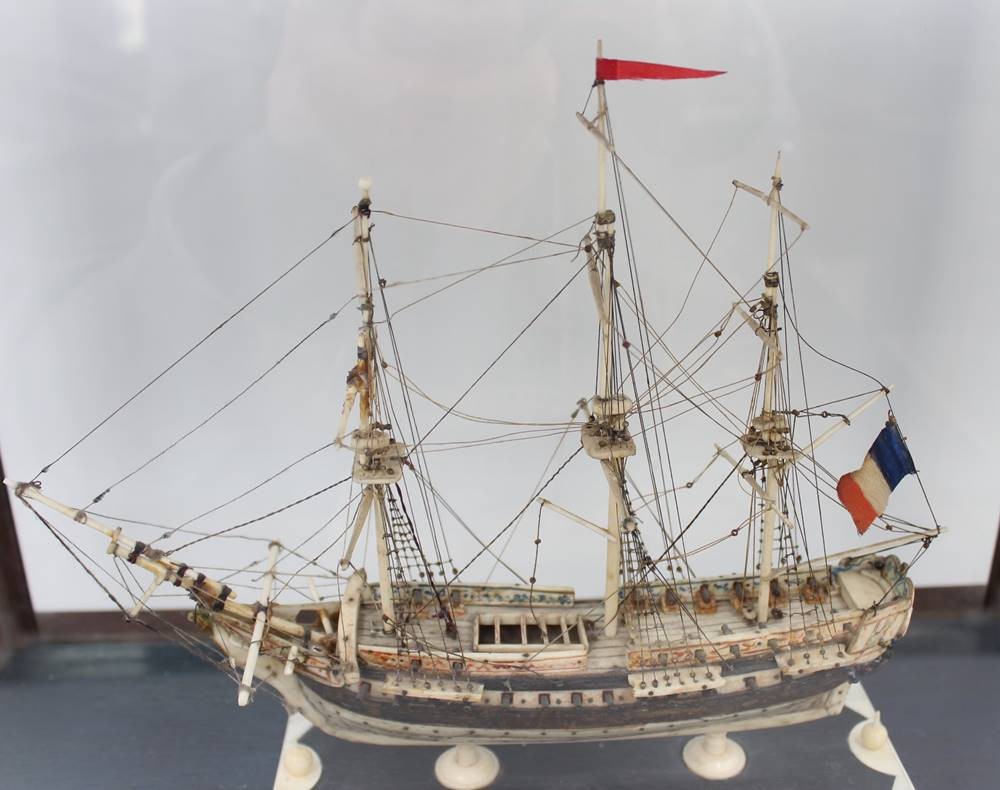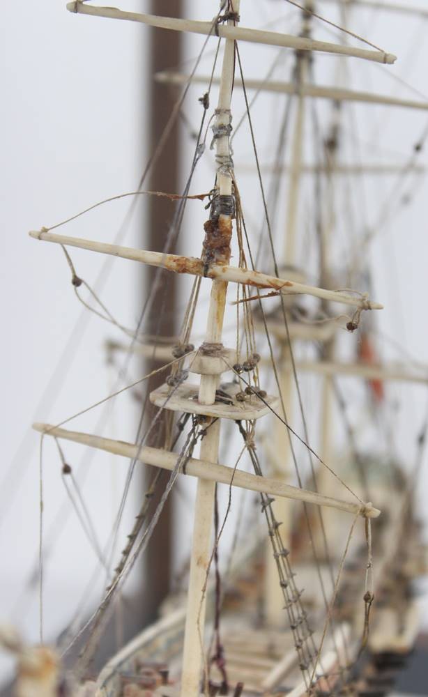Napoleonisches "Prisoner of War" Knochenschiff, wohl 18./19. Jhd., in schönem Schaukasten, Kasten H-36cm B-44,5cm T-23,5cm [1]