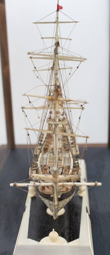 Napoleonisches "Prisoner of War" Knochenschiff, wohl um 1800, in schönem Schaukasten, Kasten H-36cm B-44,5cm T-23,5cm [1]