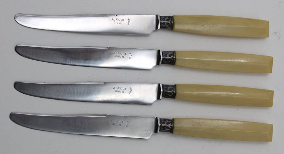 Obstmesser älter, je mit Bakelitgriffen, 4x hell, 6x dunkle Griffe, ca. L-17 u. 20cm