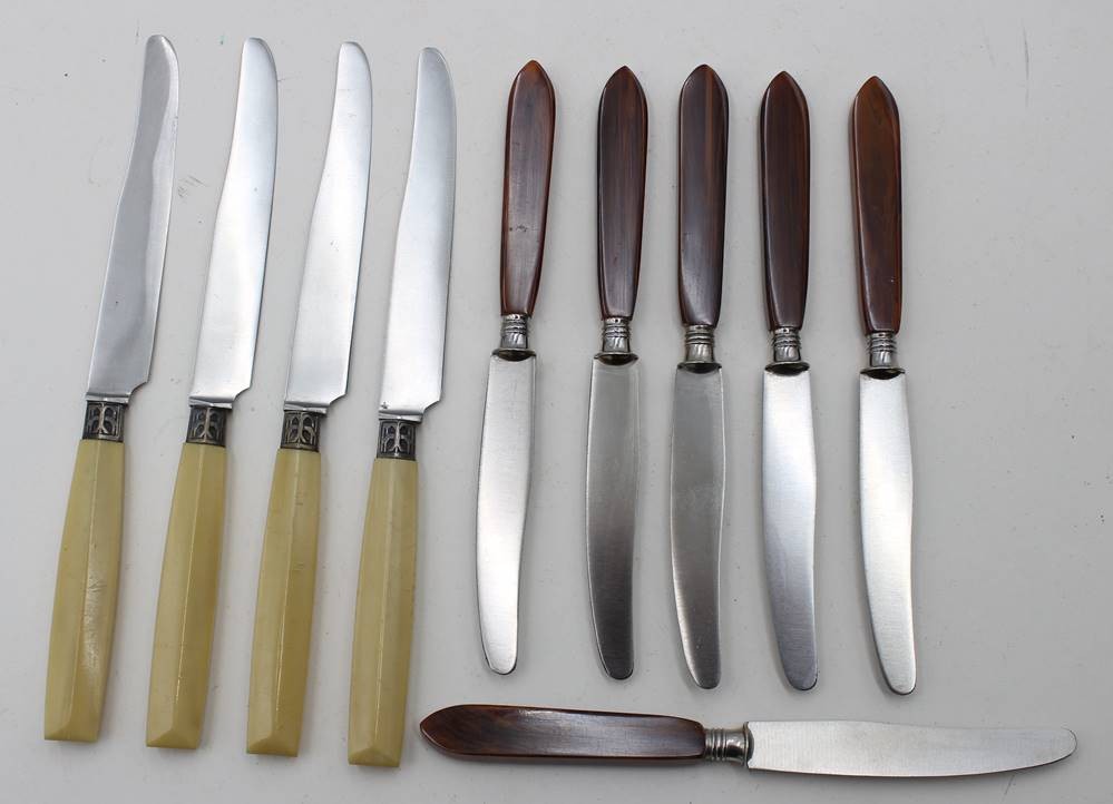 Obstmesser älter, je mit Bakelitgriffen, 4x hell, 6x dunkle Griffe, ca. L-17 u. 20cm [1]