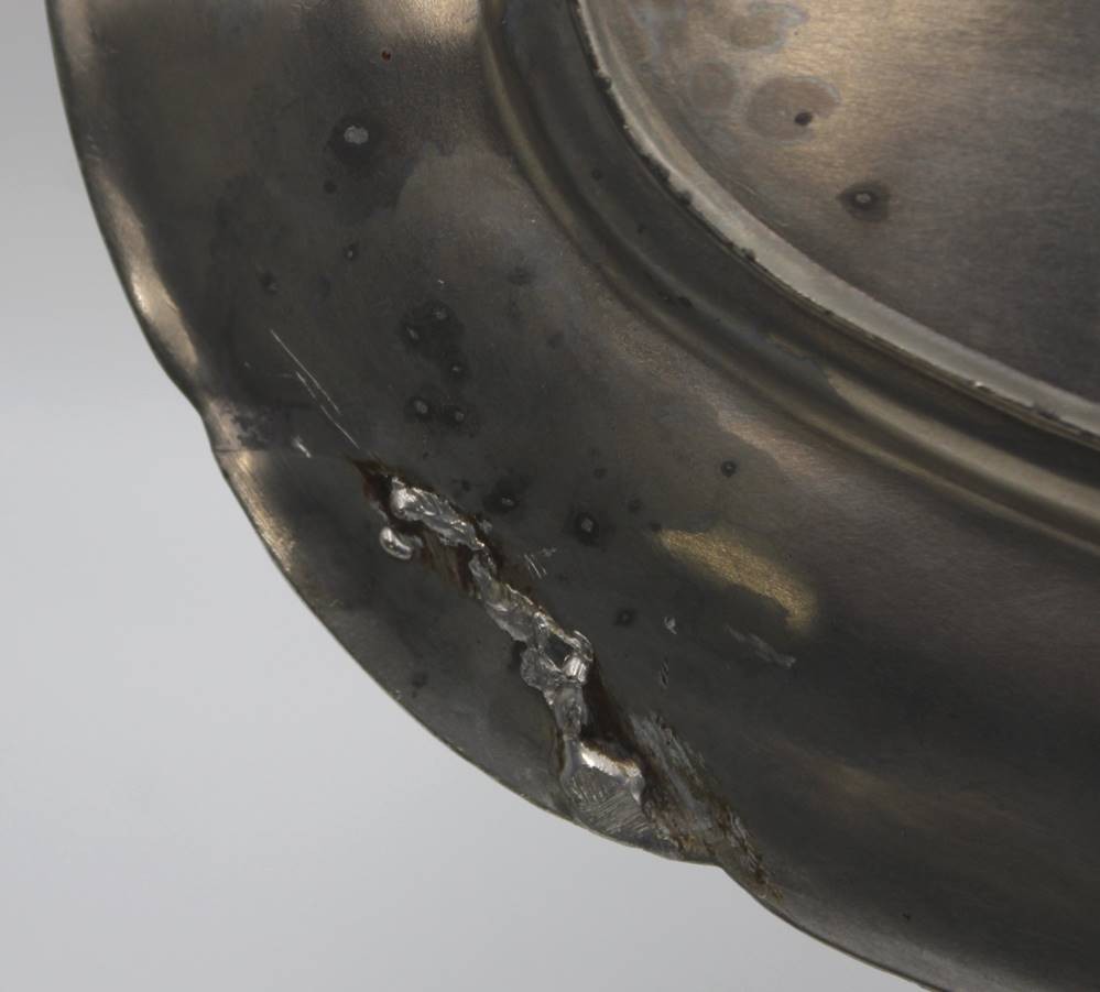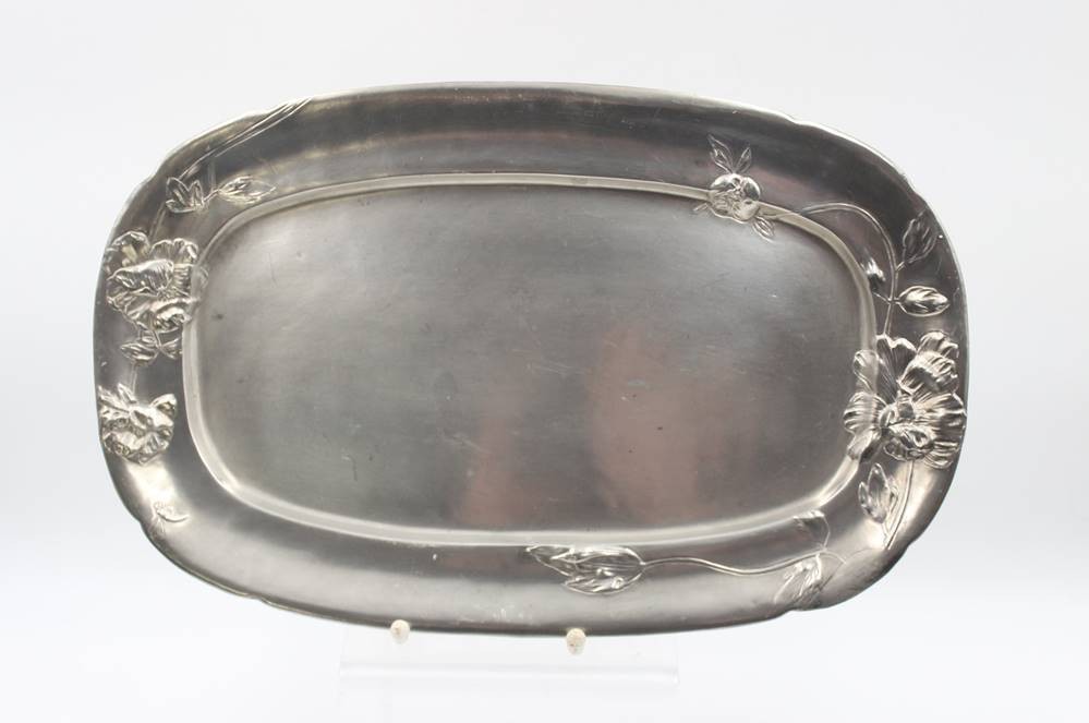 ovales Jugendstil-Tablett, Reliefdekor der Zeit, Modell-Nr. 688, 1x Restauration, ca. 39,5 x 25cm [1]