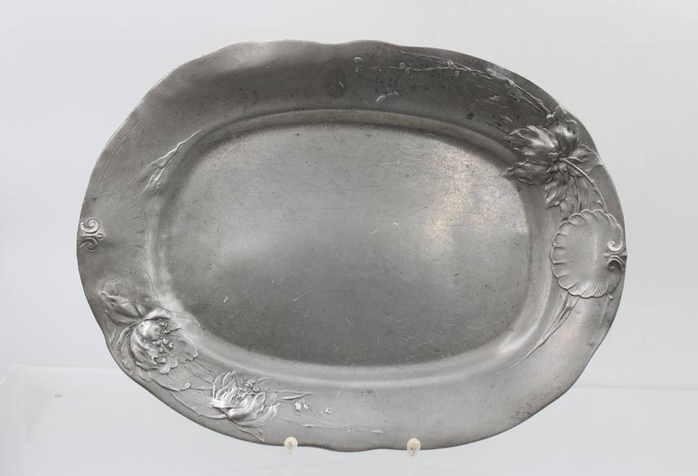 ovales Tablett, Kayserzinn , Nr. 4119, Leven, Hugo (attr.), ca. 36,5 x 27,5cm [1]