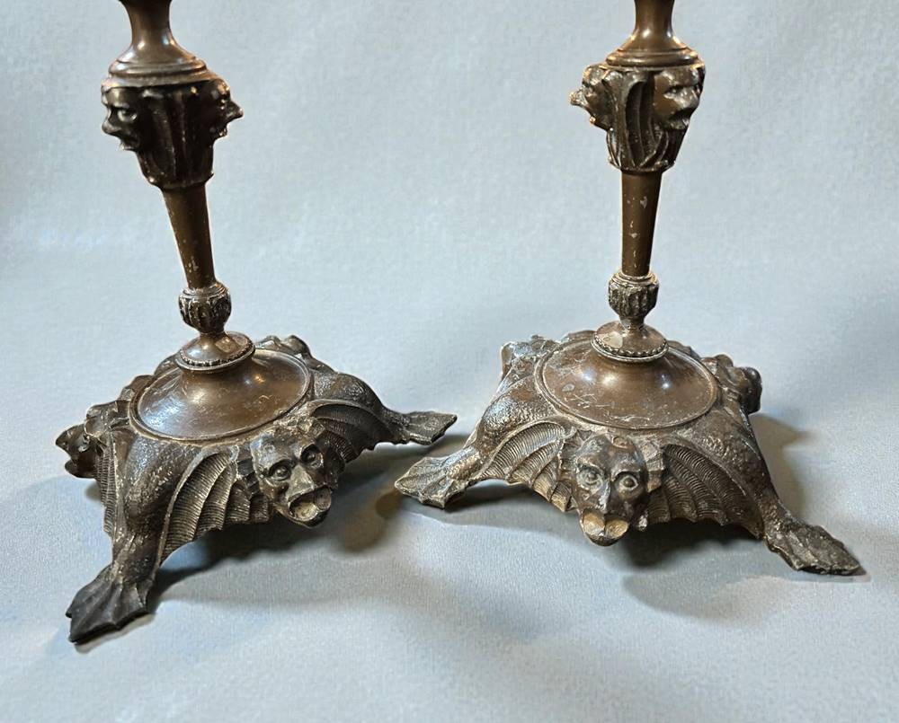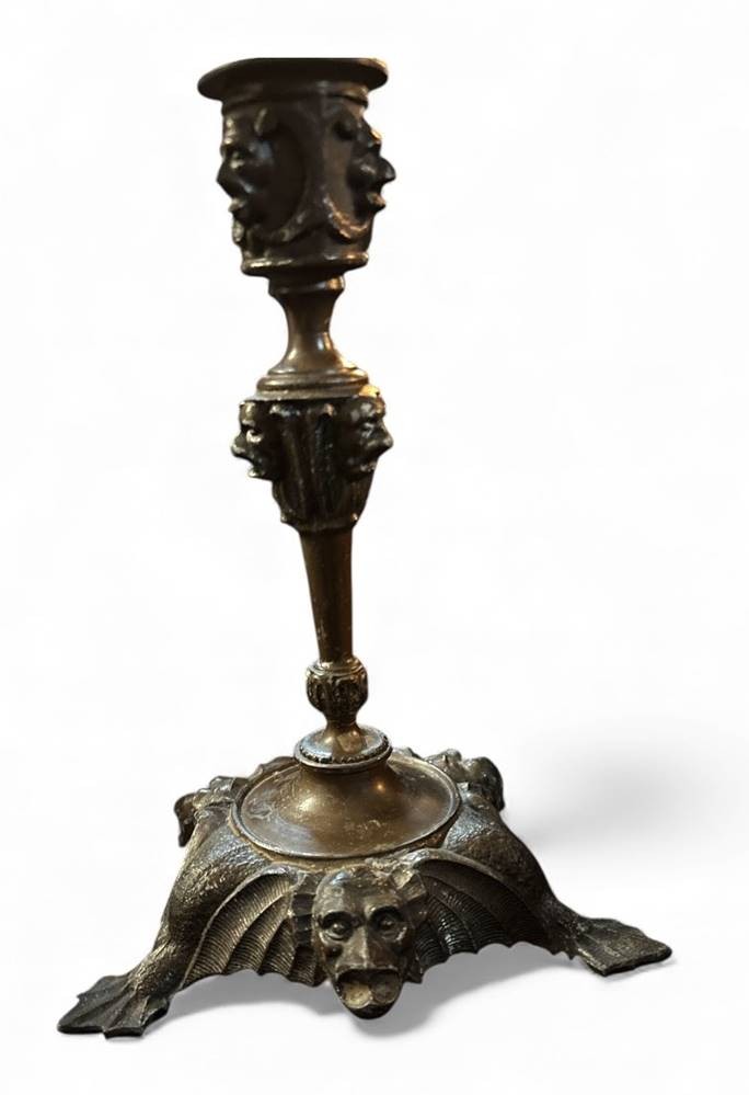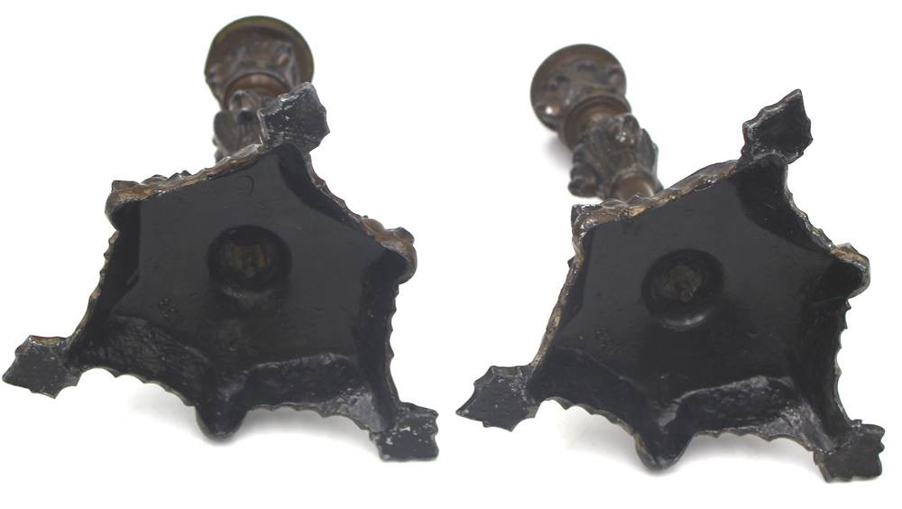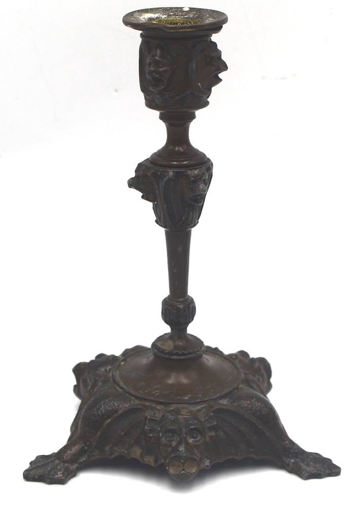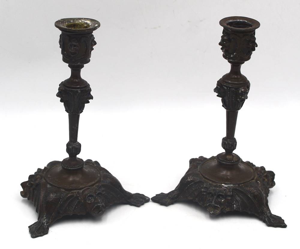 Paar Bronzeleuchter, umlaufend Fratzen, H-19 cm [1]