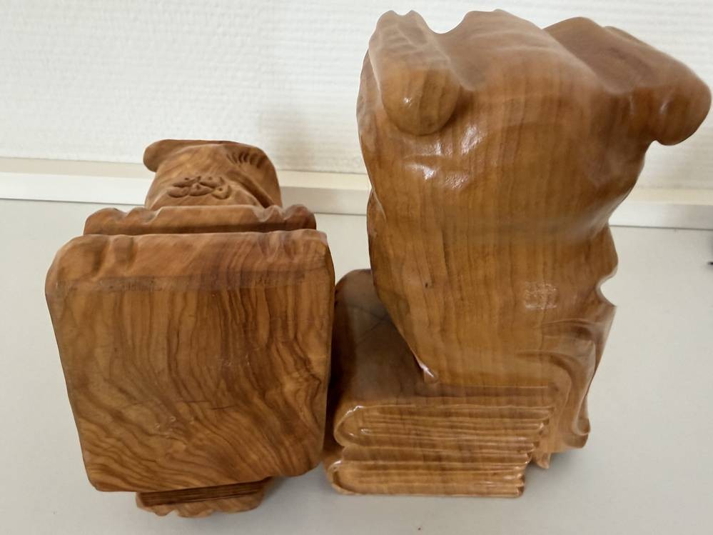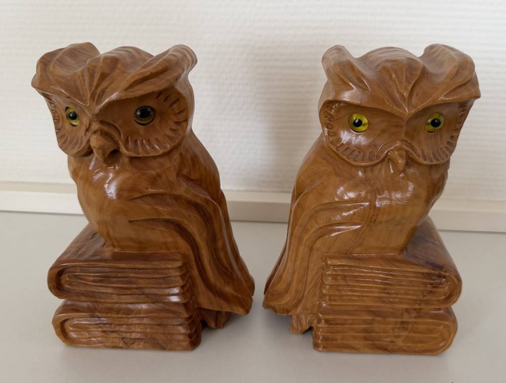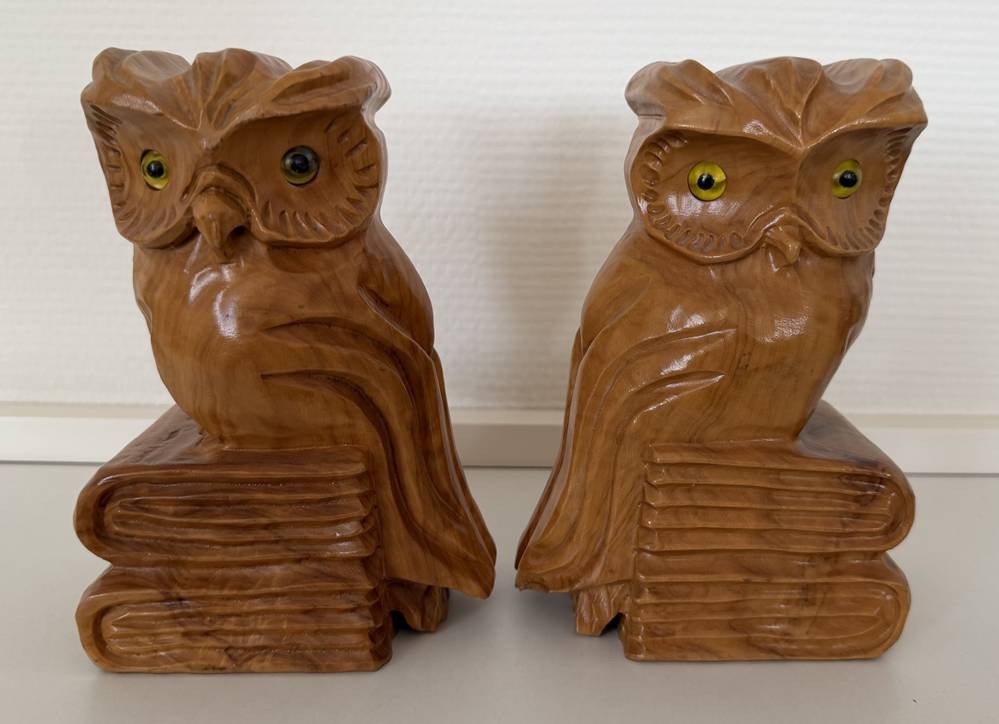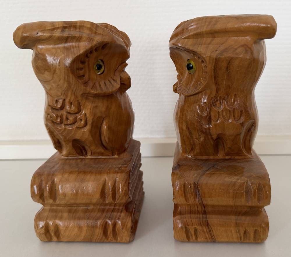 Paar Buchstürzen "Eulen auf Büchern", Oliven-Holz, H-16 cm [1]