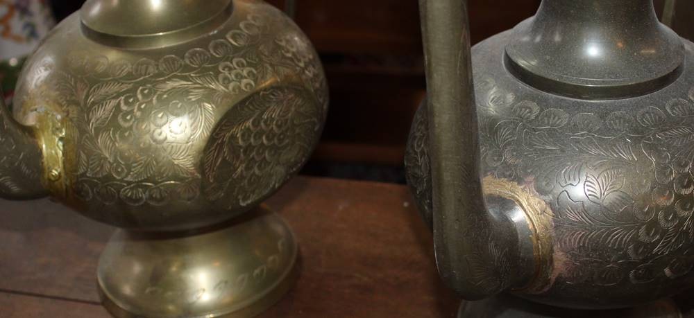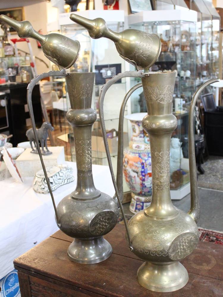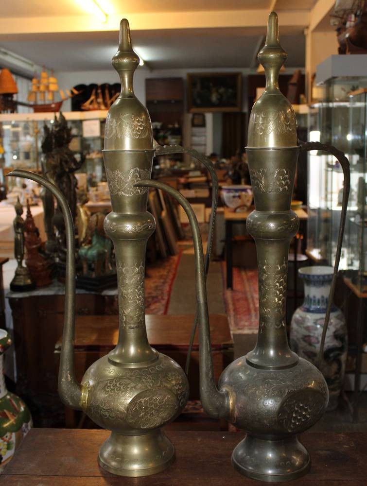 Paar gr. arab. Messing-Kannen, je ca. 91,5cm