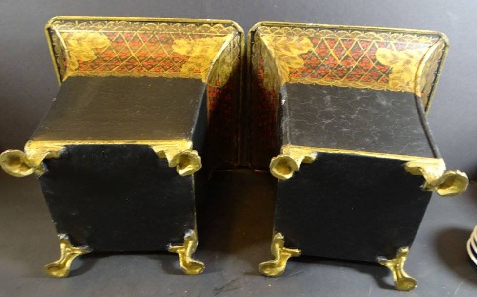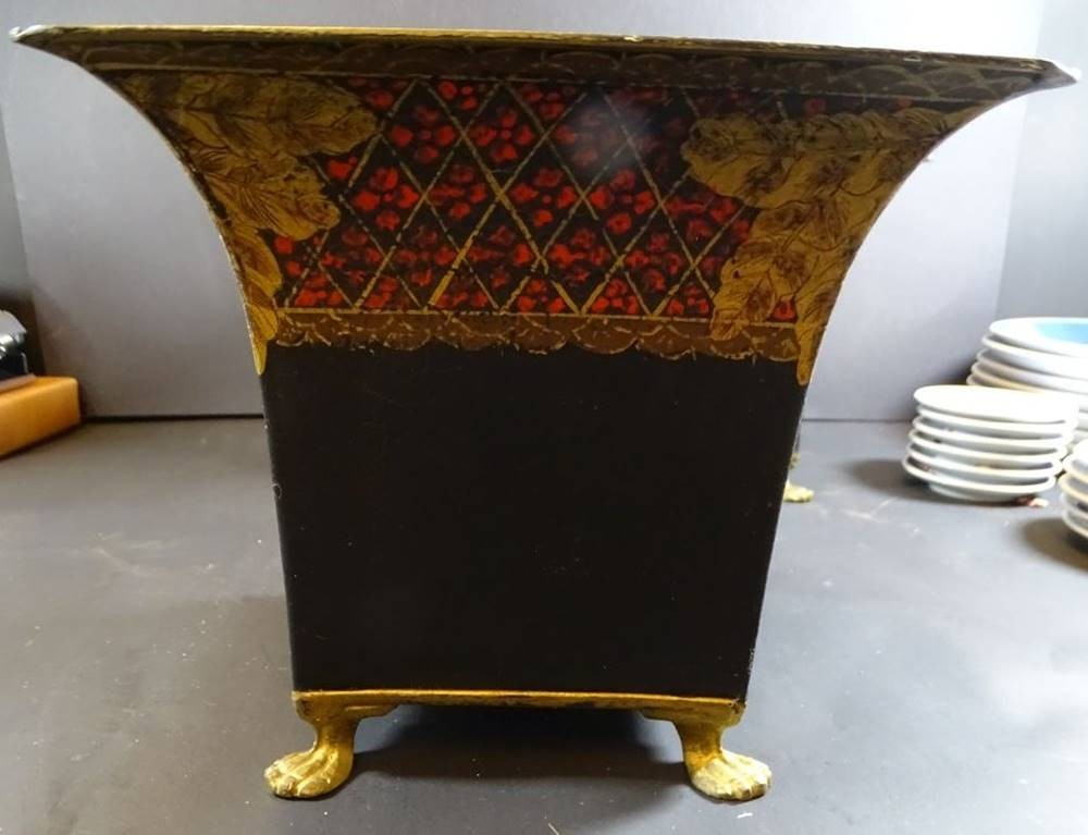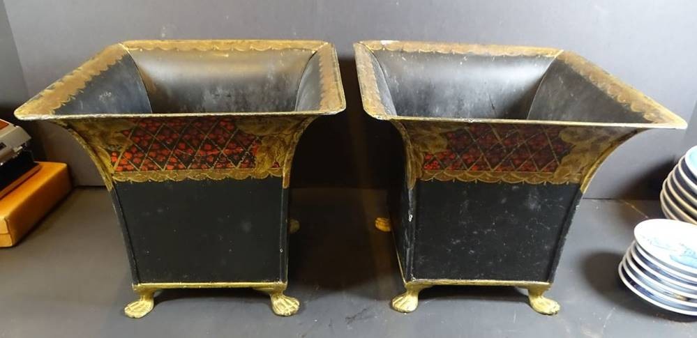 Paar grosse, eckige Blumenübertöpfe aus Metall, bemalt, Löwentatzen, H-18 cm, 20x20 cm [1]