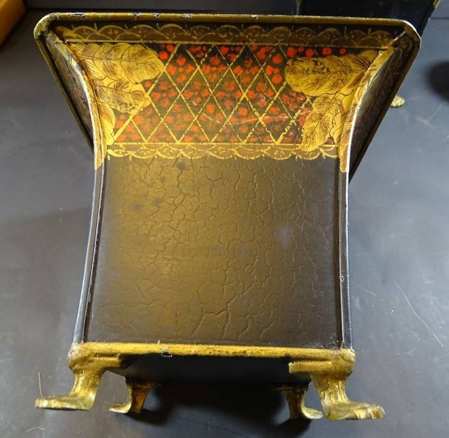 Paar grosse, eckige Blumenübertöpfe aus Metall, bemalt, Löwentatzen, H-18 cm, 20x20 cm