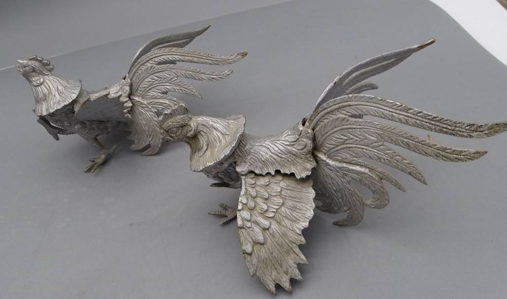 Paar Kampfhähne, Silberzinn, H-ca. 12 cm, L-ca. 20 cm [1]