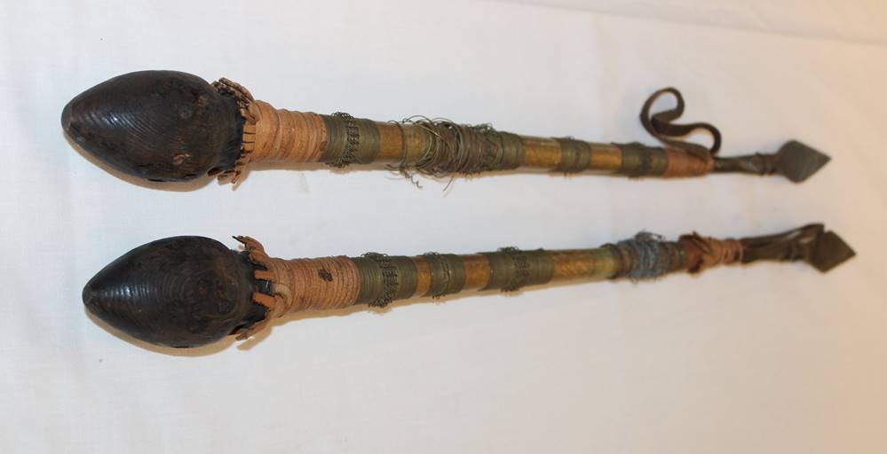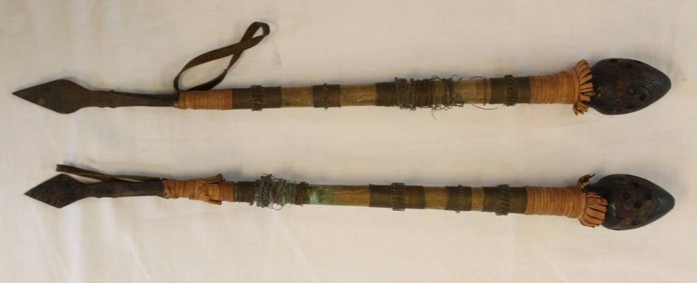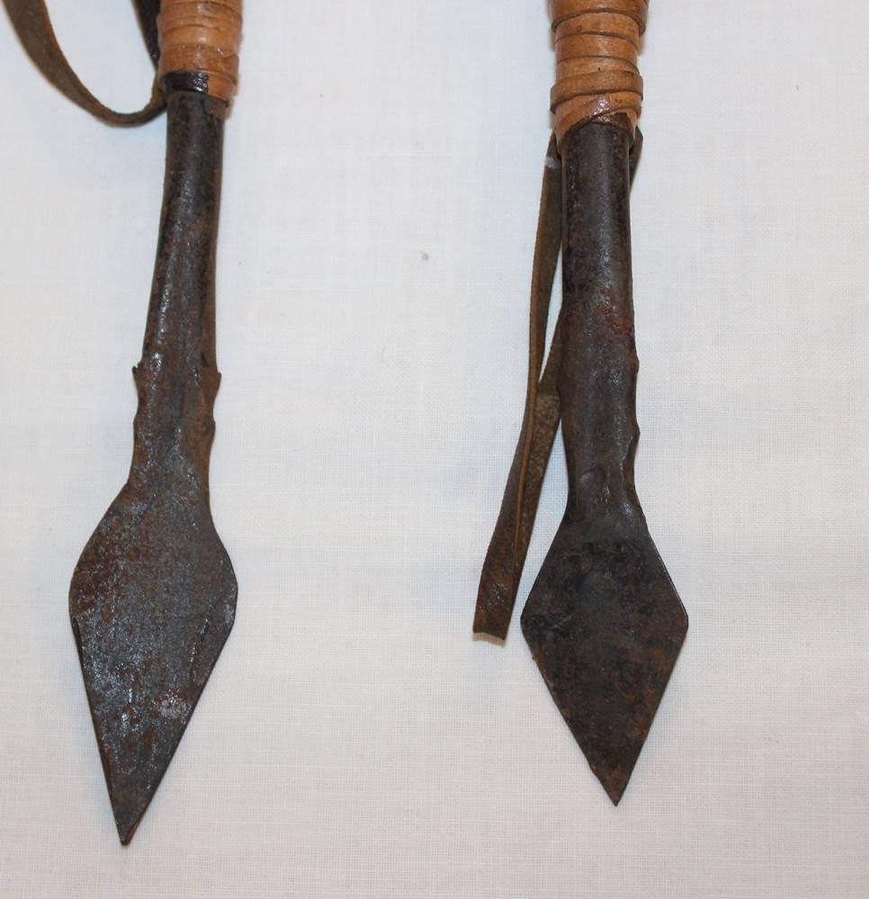 Paar kurze Speere, wohl Afrika, Altersspuren, L-48cm