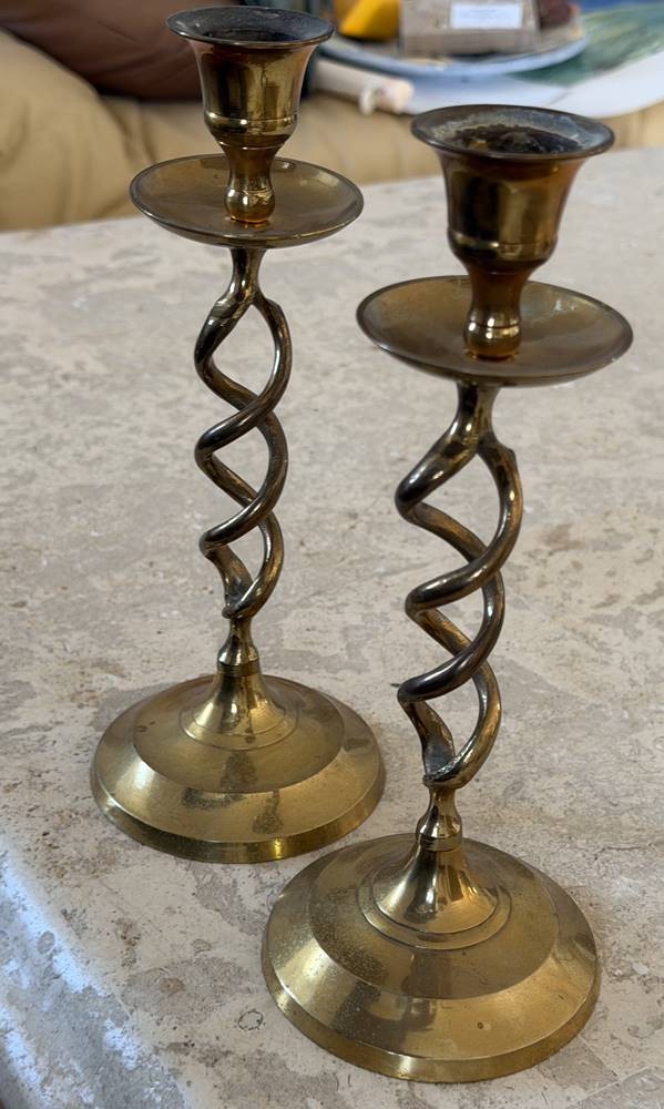 Paar Messingleuchter, Schaft gedreht, H-21 cm [1]