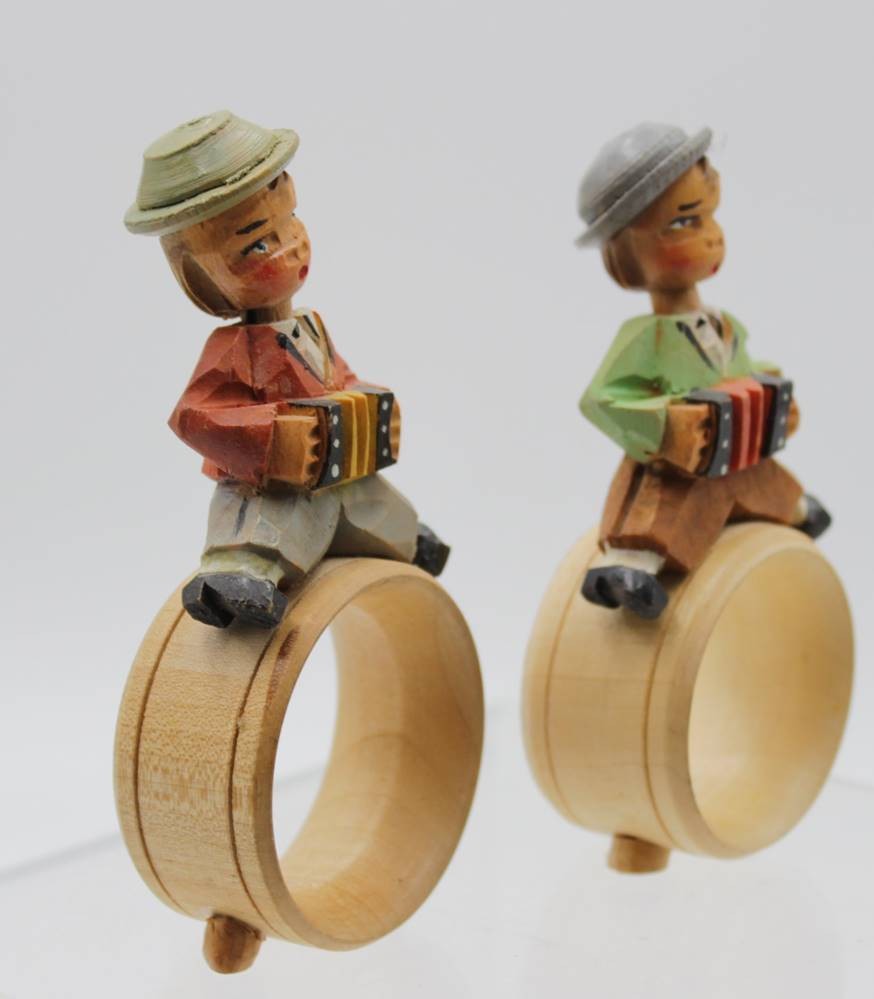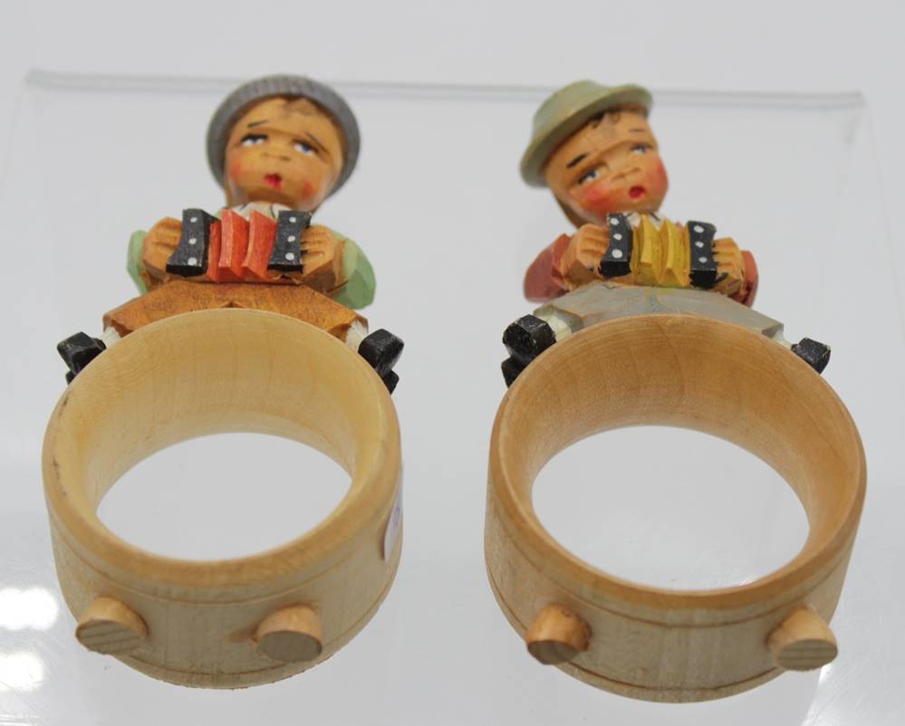 Paar Serviettenringe, Holzarbeiten, bewegl. Köpfe, ca. H-11cm. [1]
