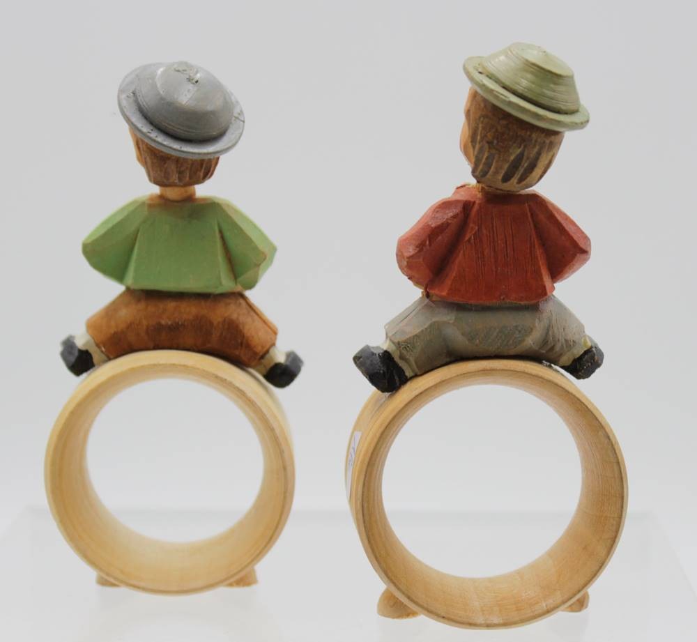 Paar Serviettenringe, Holzarbeiten, bewegl. Köpfe, ca. H-11cm.