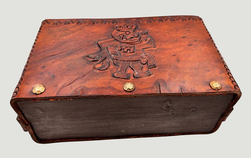 Papierbehälter, Leder/Holz, Peru, H-17 cm, 21x9 cm [1]