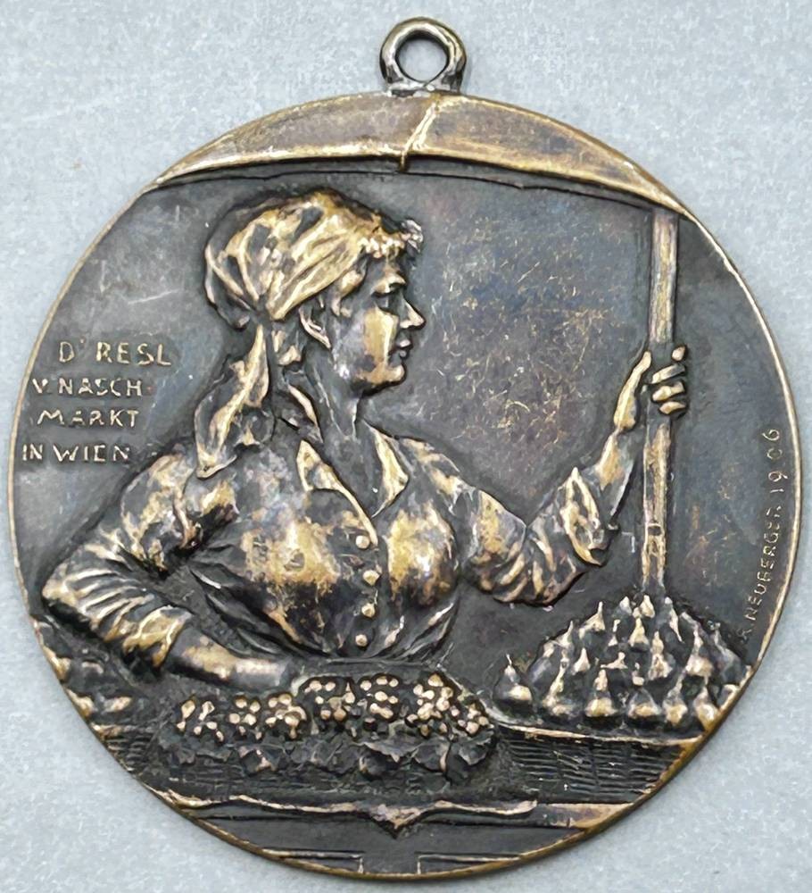 R. Neuberger, 1906 "D'Resl vom Naschmarkt, Wien", Bronze Anhänger, D-5 cm [1]