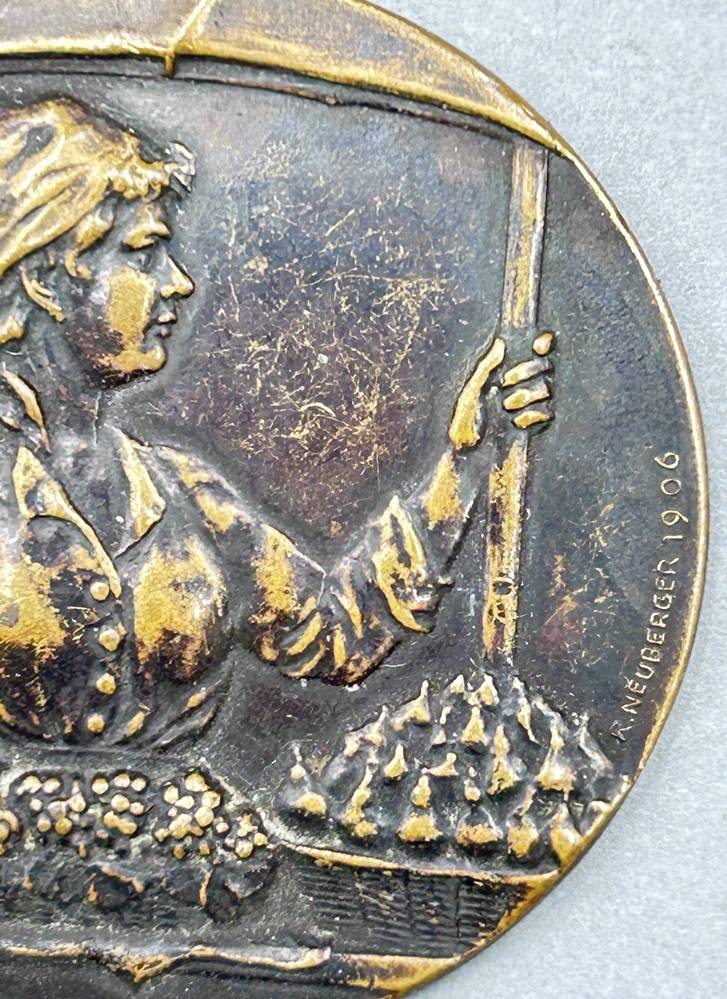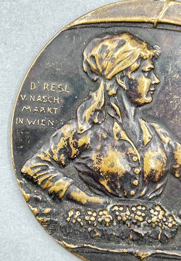 R. Neuberger, 1906 "D'Resl vom Naschmarkt, Wien", Bronze Anhänger, D-5 cm